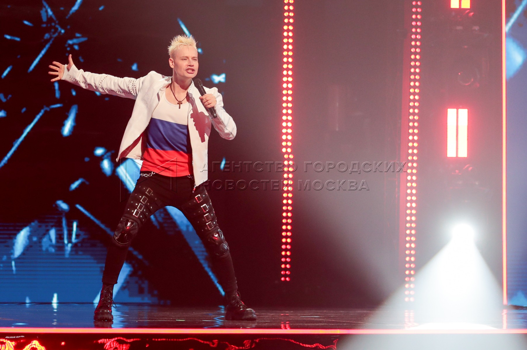 Певец Ярослав Дронов (Шаман) во время торжественного концерта и награждения победителей II Всероссийского конкурса художественных работ, посвященных достижениям легендарных спортсменов, «Мы верим твердо в героев спорта» во Дворце гимнастики Ирины Винер.