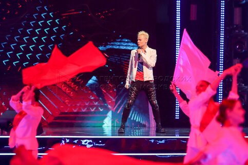 - Описание: Певец Ярослав Дронов (Шаман) во время торжественного концерта и награждения победителей II Всероссийского конкурса художественных работ, посвященных достижениям легендарных спортсменов, «Мы верим твердо в героев спорта» во Дворце гимнастики Ирины Винер.