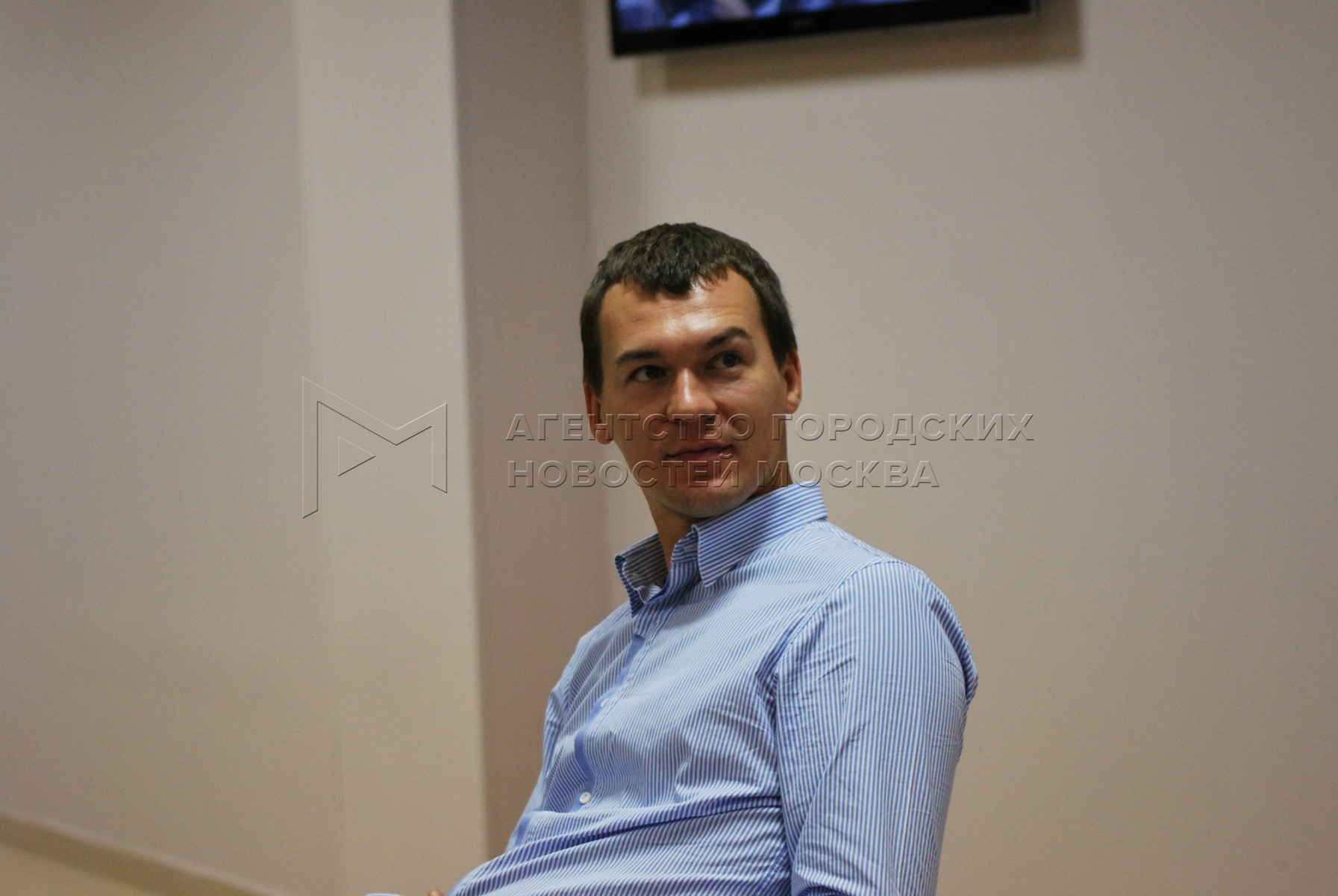 • Описание: Кандидат в мэры Москвы Сергей Митрохин во время дебатов кандидатов на пост мэра Москвы на радиостанции «Москва FM».