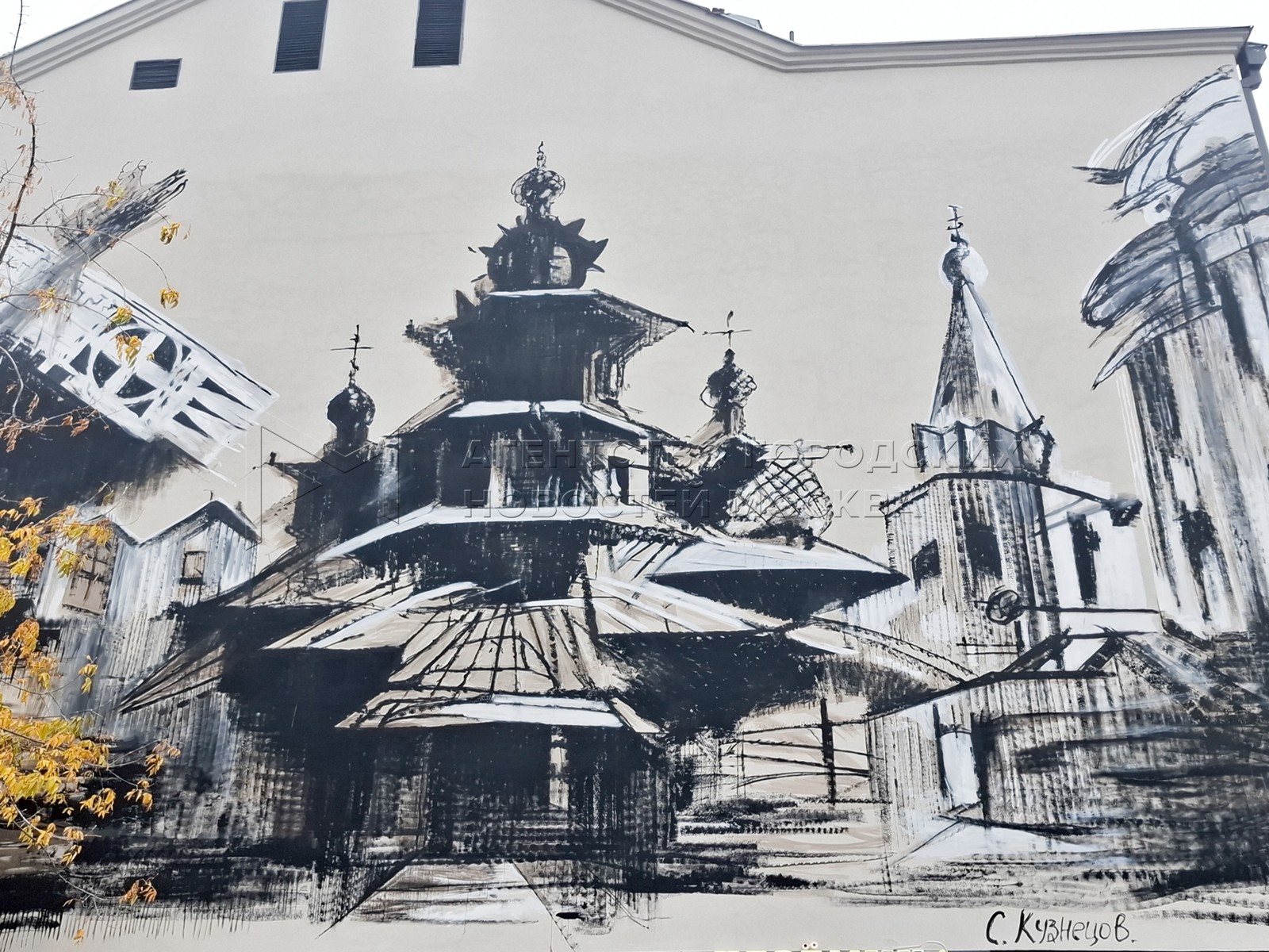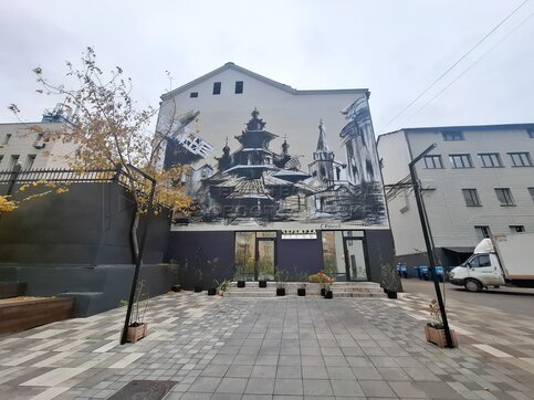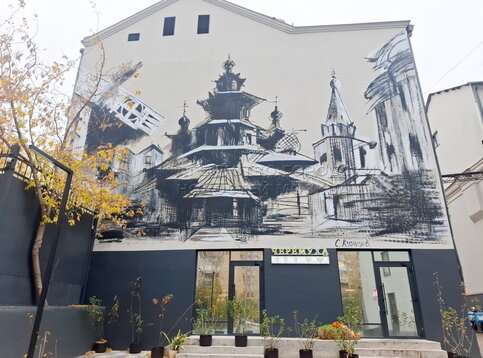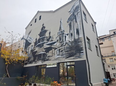 Мурал на тему русского зодчества, появившийся на стене д. 9 на ул. Большие Каменщ...