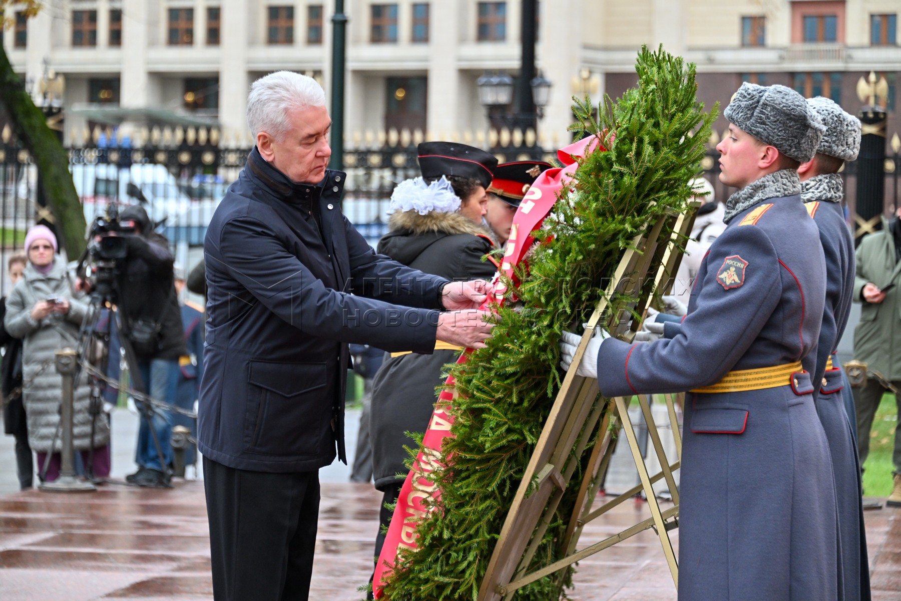 Мэр Москвы Сергей Собянин во время возложения венков к Могиле Неизвестного Солдат...
