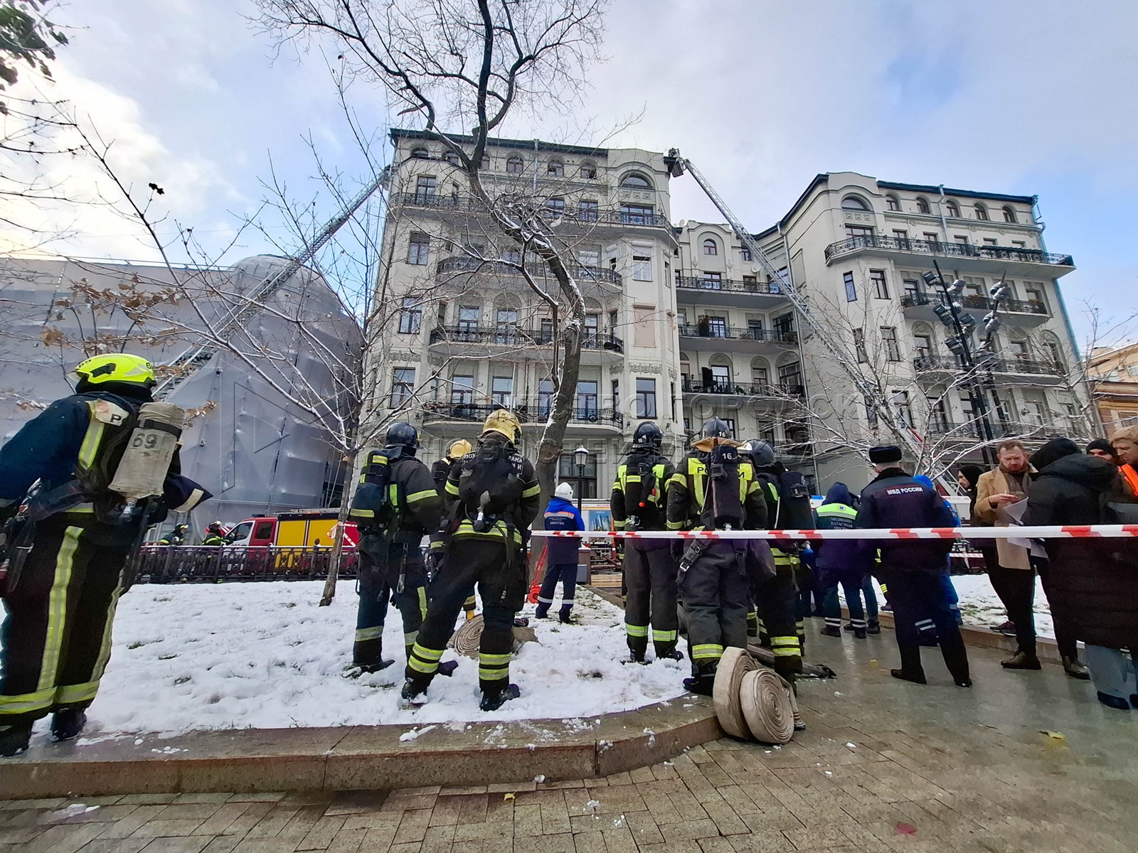 • Заголовок: Оперативные службы на месте возгорания в жилом доме на Тверском бульваре