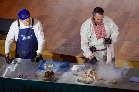 Приготовление блюда северной кухни – строганины. Кулинарный мастер-класс в фудхол...