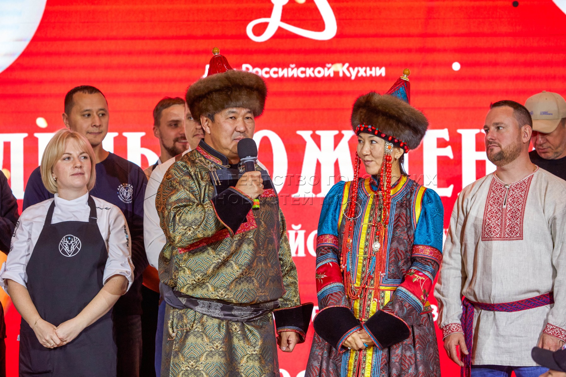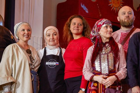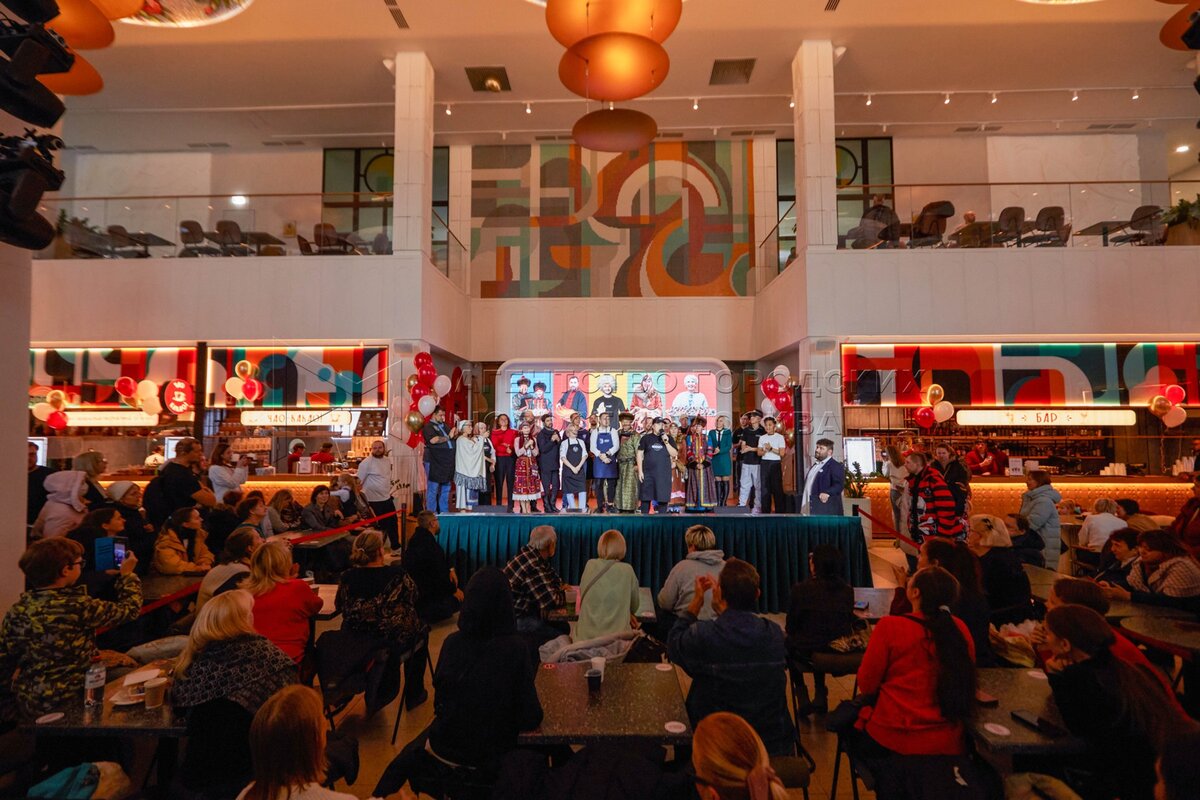Участники в фудхолле «Дом российской кухни» на ВДНХ в рамках праздничных мероприя...