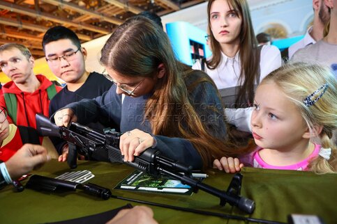Дети во время мастер-класса по разборке и сборке оружия. Федеральный просветитель...