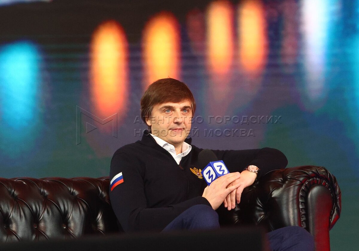 Министр просвещения РФ Сергей Кравцов (слева) и телеведущий, журналист Андрей Мал...