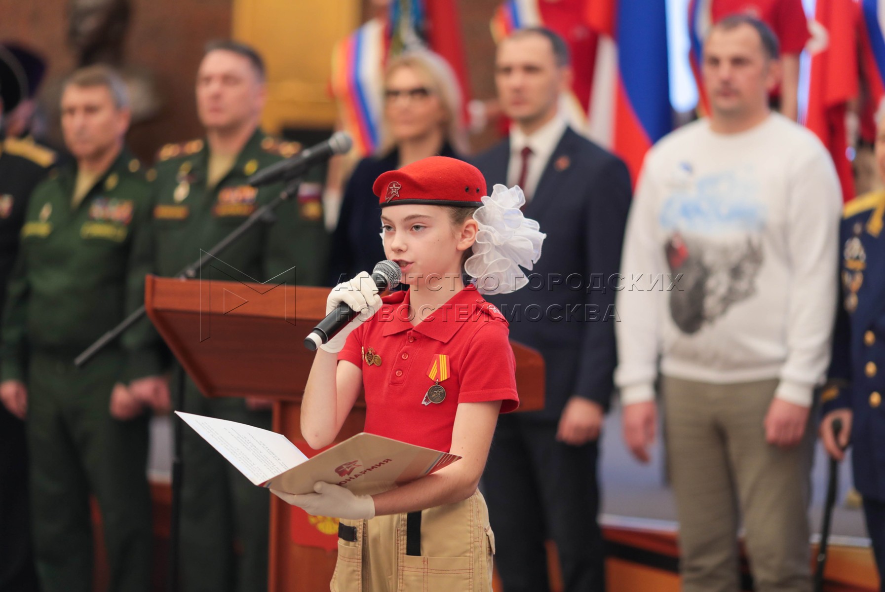 Торжественное посвящение в юнармейцы в Зале полководцев Музея Победы на Поклонной горе.