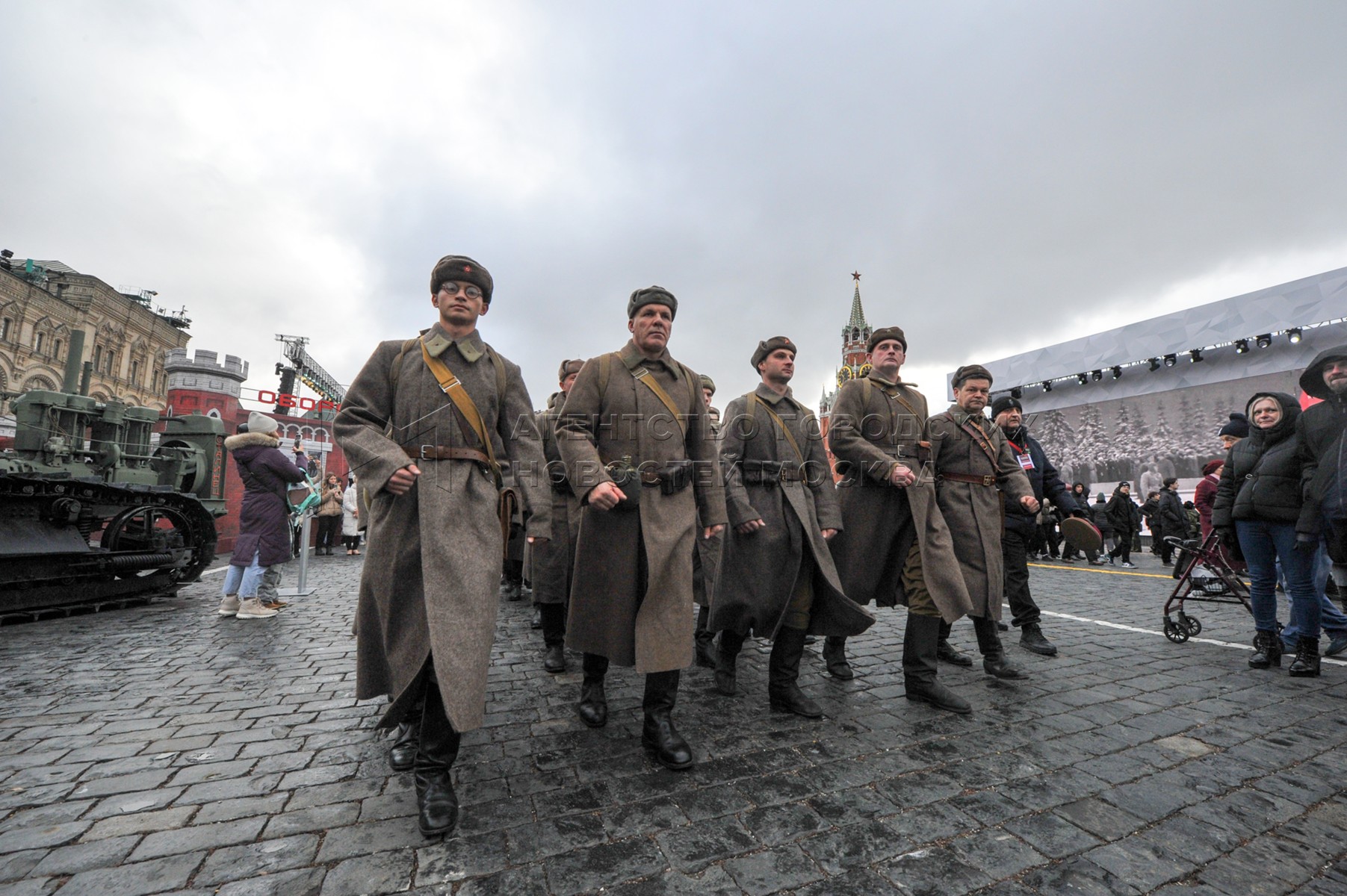 • Описание: Участники театрализованных мероприятий. Открытие интерактивного музея под открытым небом в честь 83-й годовщины исторического военного парада на Красной площади.