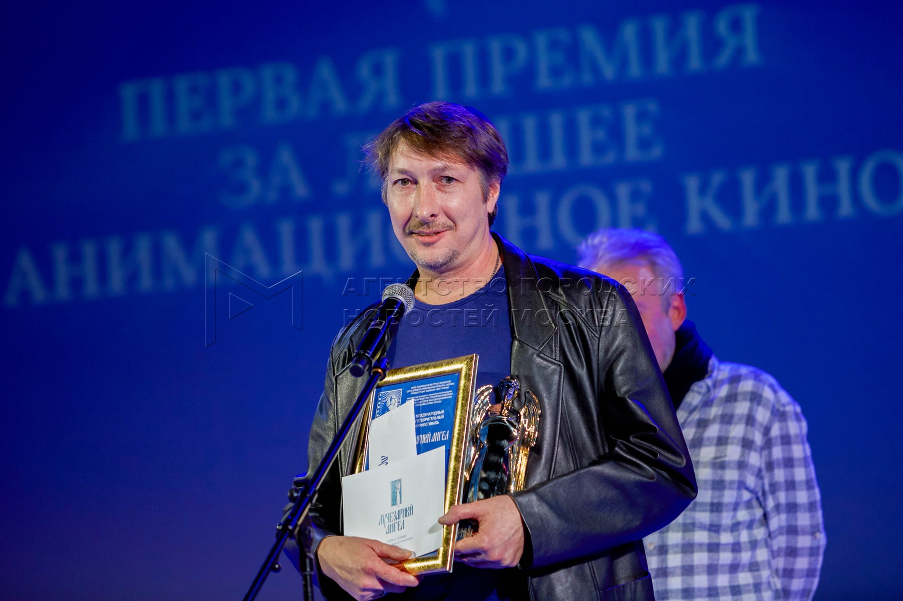 Режиссер Алексей Почивалов, получивший первую премию в номинации «За лучшее анимационное кино» за фильм «Радиопомехи» (Россия, 2024). Церемония закрытия международного благотворительного кинофестиваля «Лучезарный ангел» в кинотеатре «Поклонка» Музея Победы.
