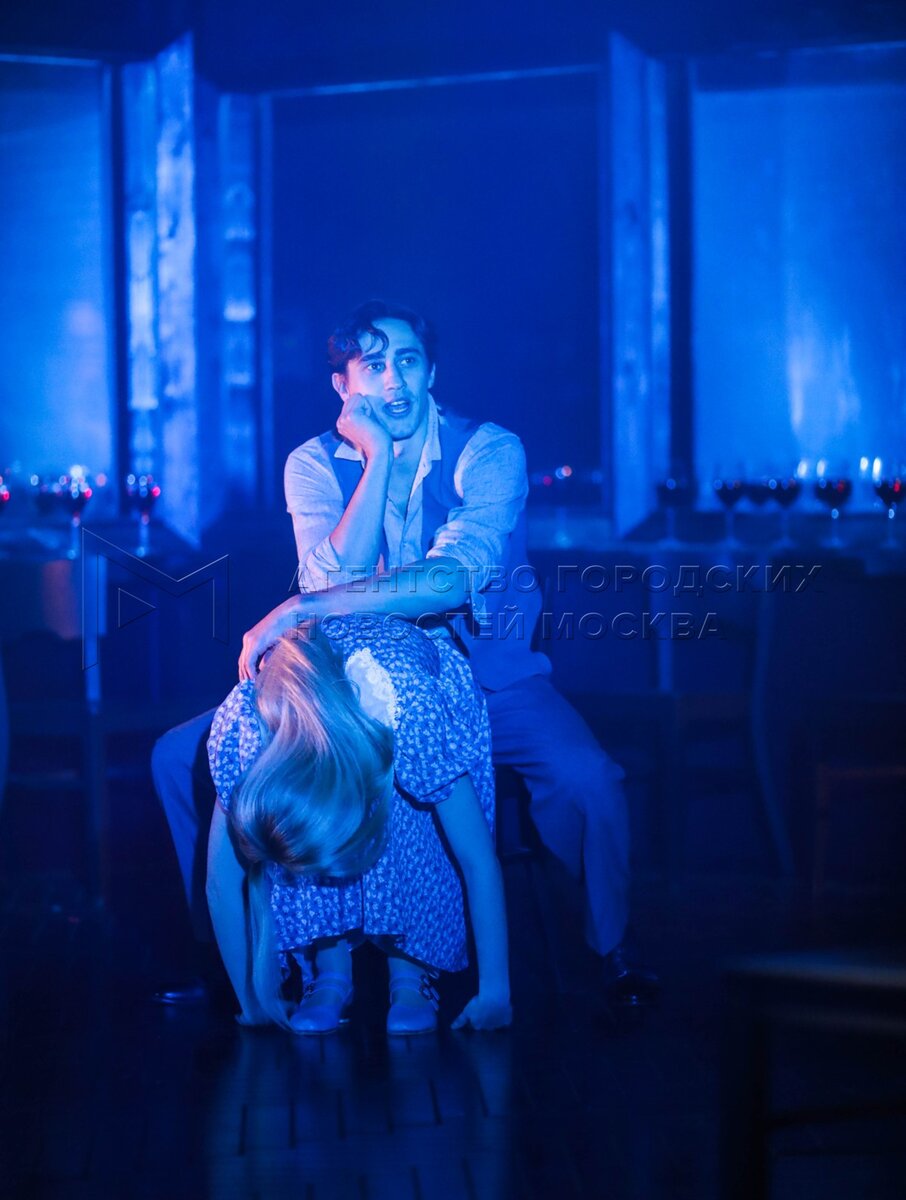 Актеры Игорь Назаренко в роли Нила Дудукина и Юлия Романович в роли Женщины театр...
