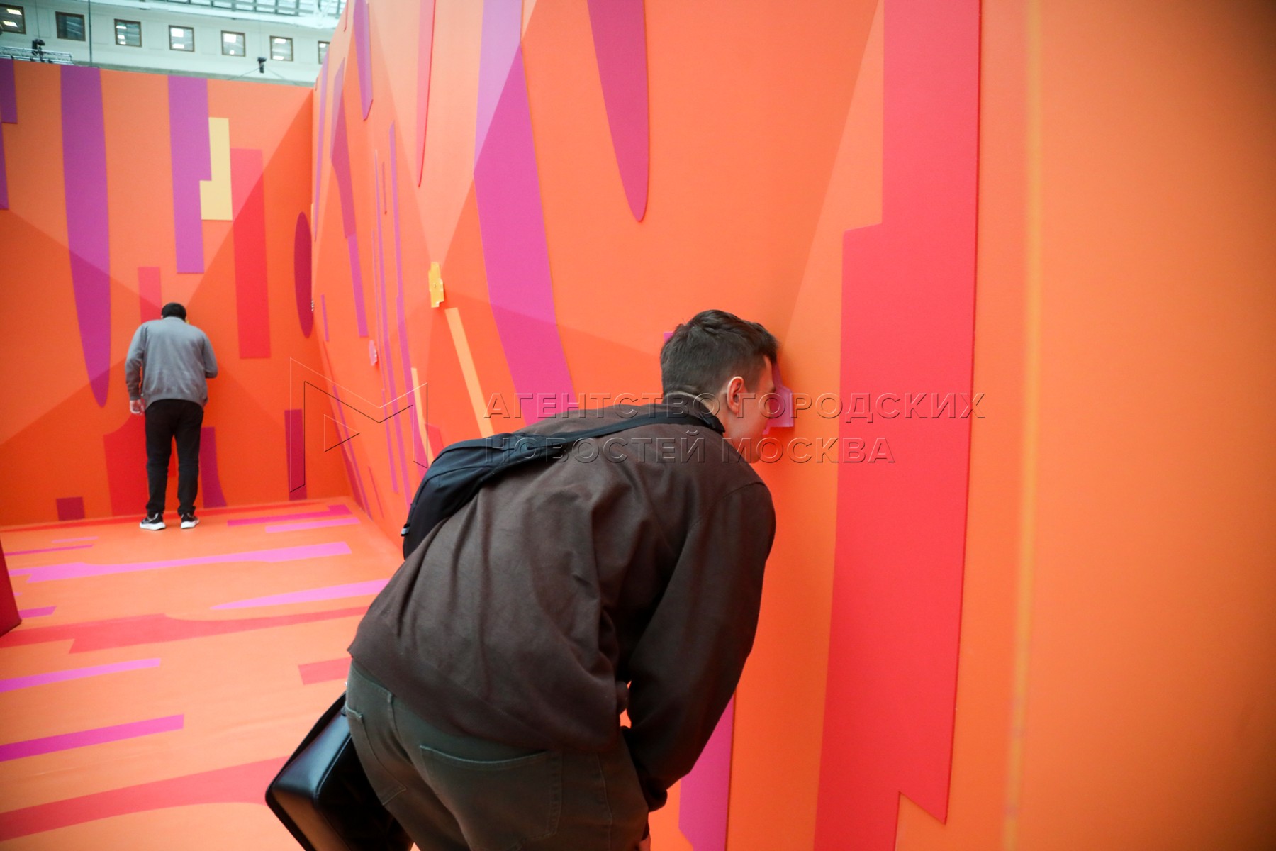 Посетитель с рекламными каталогами. Открытие XXXII Международного архитектурного ...