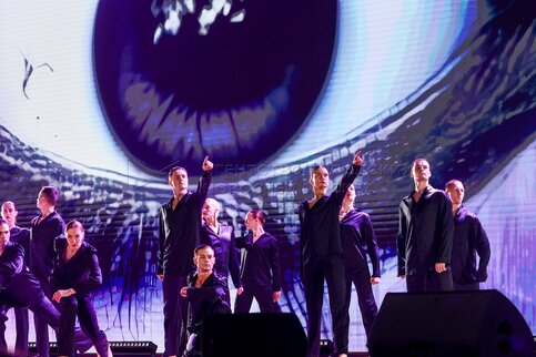 Танцоры во время выступления. Гала-концерт «Голос поэта» в новом национальном цен...