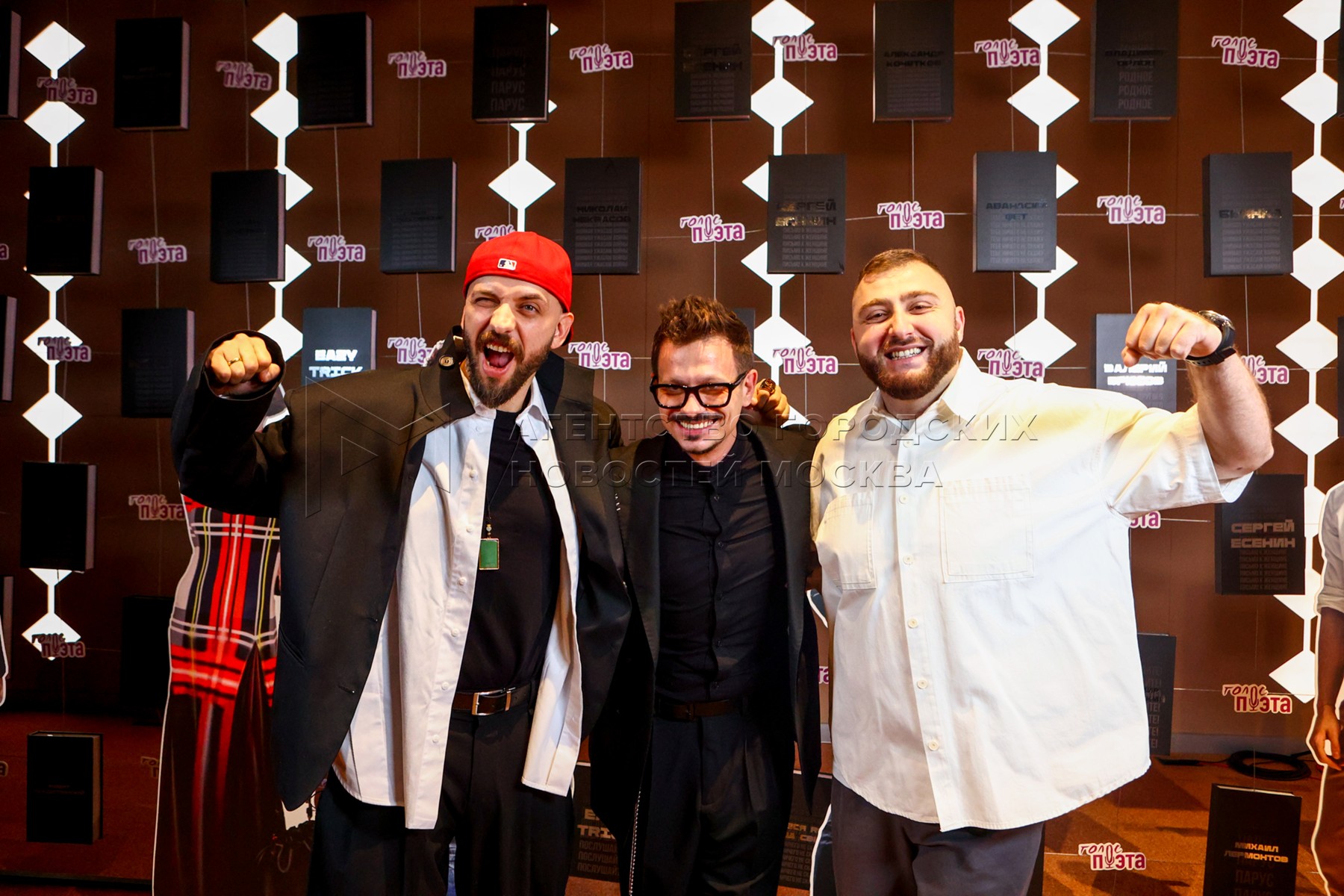 Рэперы ST (Александр Степанов), PLC (Сергей Трущев) и MOSЯ (Моисей Бегларов) (сле...