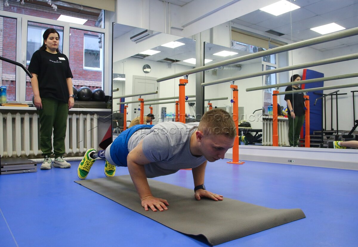 Занятие по реабилитации с участником специальной военной операции (СВО) в столичном центре протезирования конечностей «Динамика».