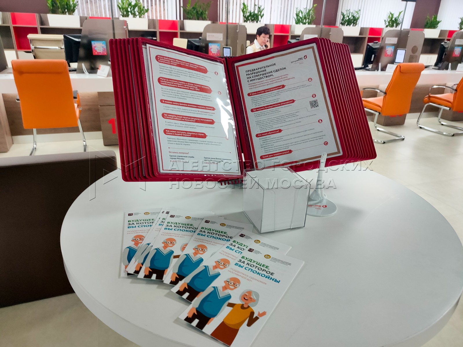 Настольная информационная стойка с перекидной системой. Центр госуслуг «Мои документы» в Южном Тушино после капитального ремонта.