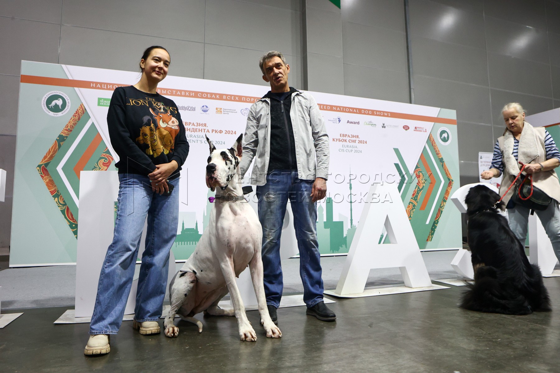 • Описание: Дог на выставке собак всех пород «Евразия. Кубок президента Российской кинологической федерации 2024» в Международном выставочном центре «Крокус Экспо».