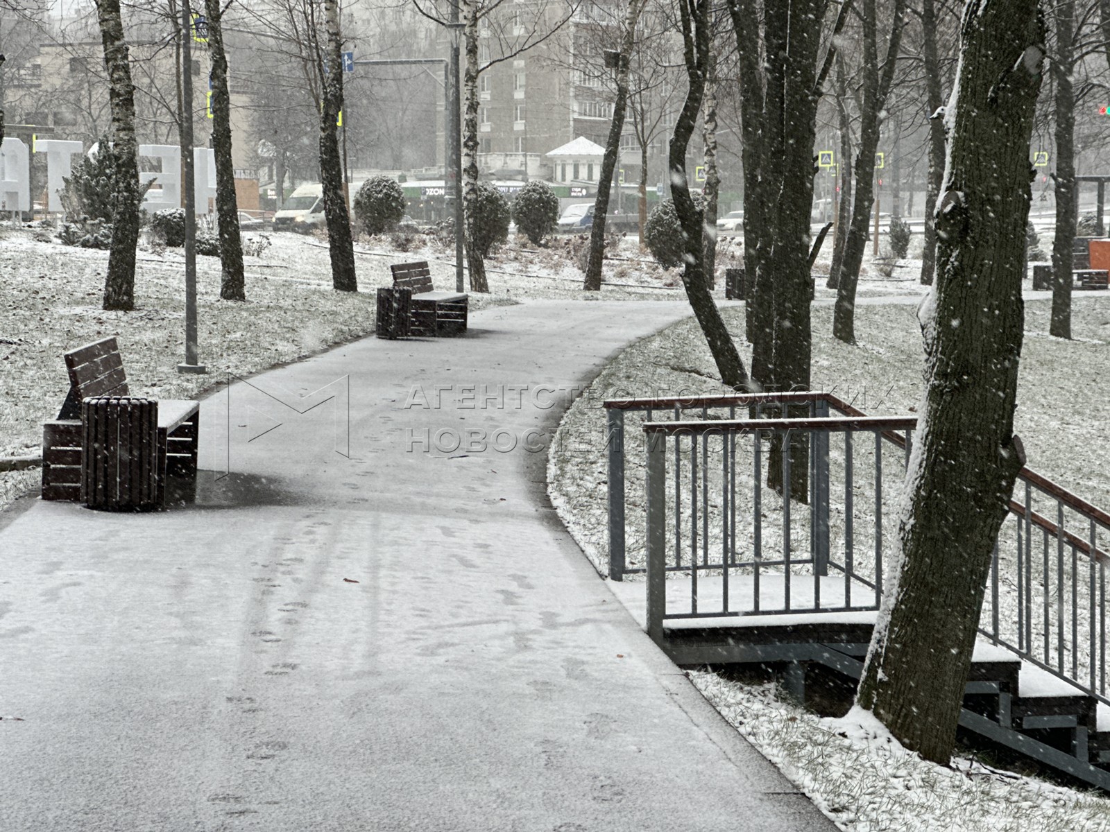 • Описание: Снежная погода утром 20 ноября 2024 года в Москве.