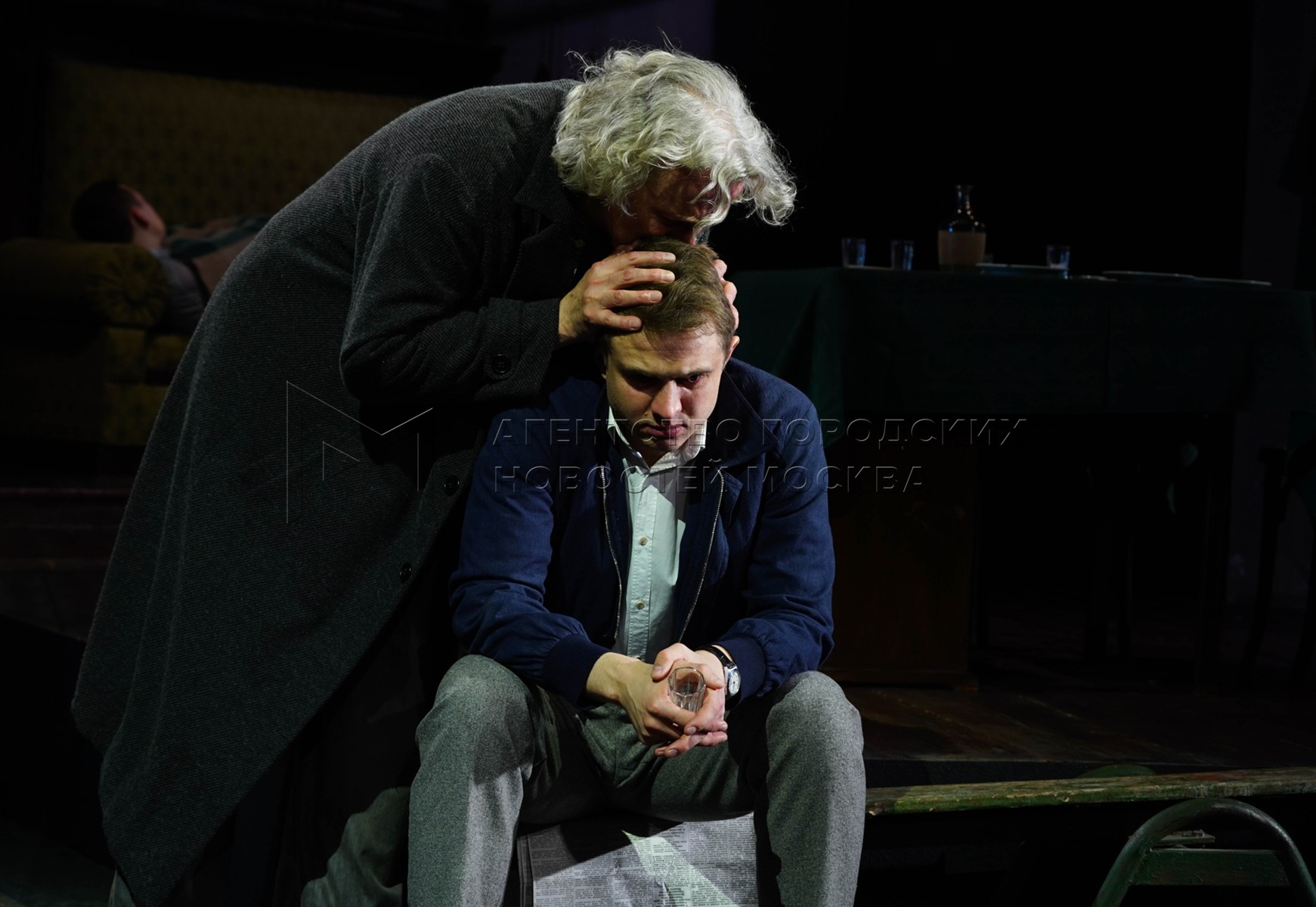 - Описание: Актеры Виталий Егоров в роли Сарафанова (слева) и Артур Касимов в роли Бусыгина. Предпоказ восстановленной версии спектакля режиссера Алены Лаптевой «Старший сын» на Другой сцене театра «Современник».