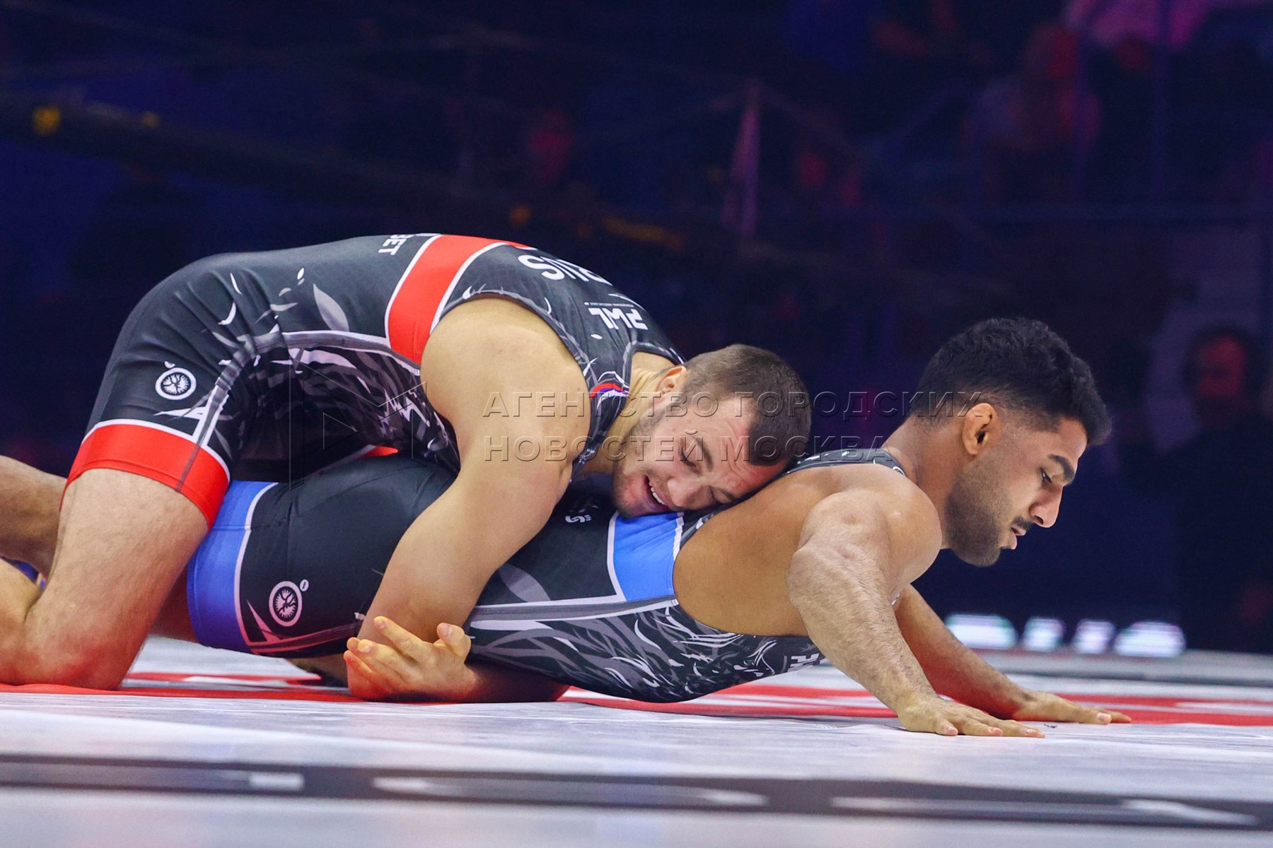 - Описание: Матчевая встреча борцов России и Ирана на международном турнире по спортивной борьбе «Борцовская лига Поддубного» в рамках Профессиональной борцовской лиги (PWL-7) на волейбольной арене «Динамо».