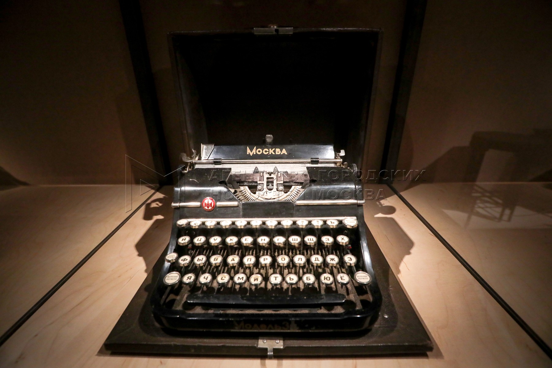 Портативная пишущая машина «Москва» модель 3 (1954 г.). Печатная машинка «Москва». Предпоказ обновленной постоянной экспозиции «История Москвы» в Музее Москвы.