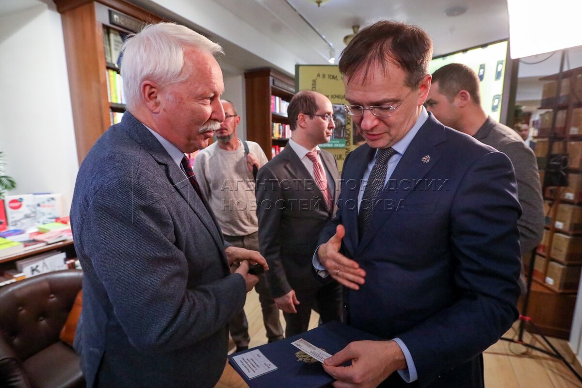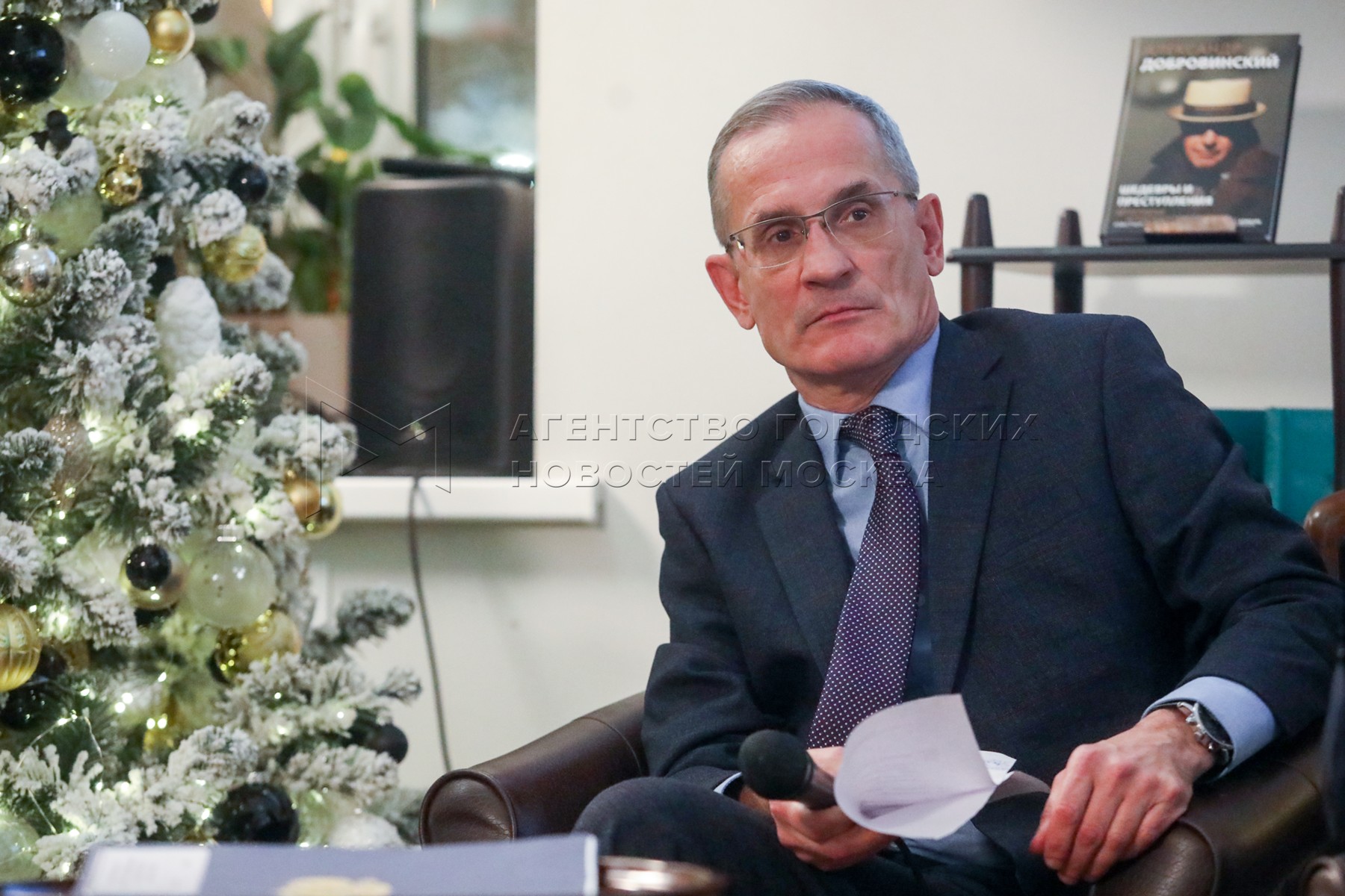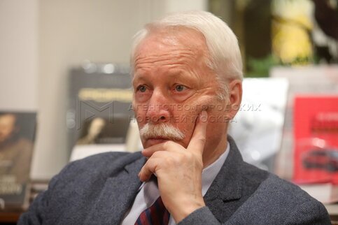 Научный директор Российского военно-исторического общества (РВИО) Михаил Мягков. Открытие отдела военной мемуаристики в книжном клубе «Достоевский» на ул. Воздвиженка.