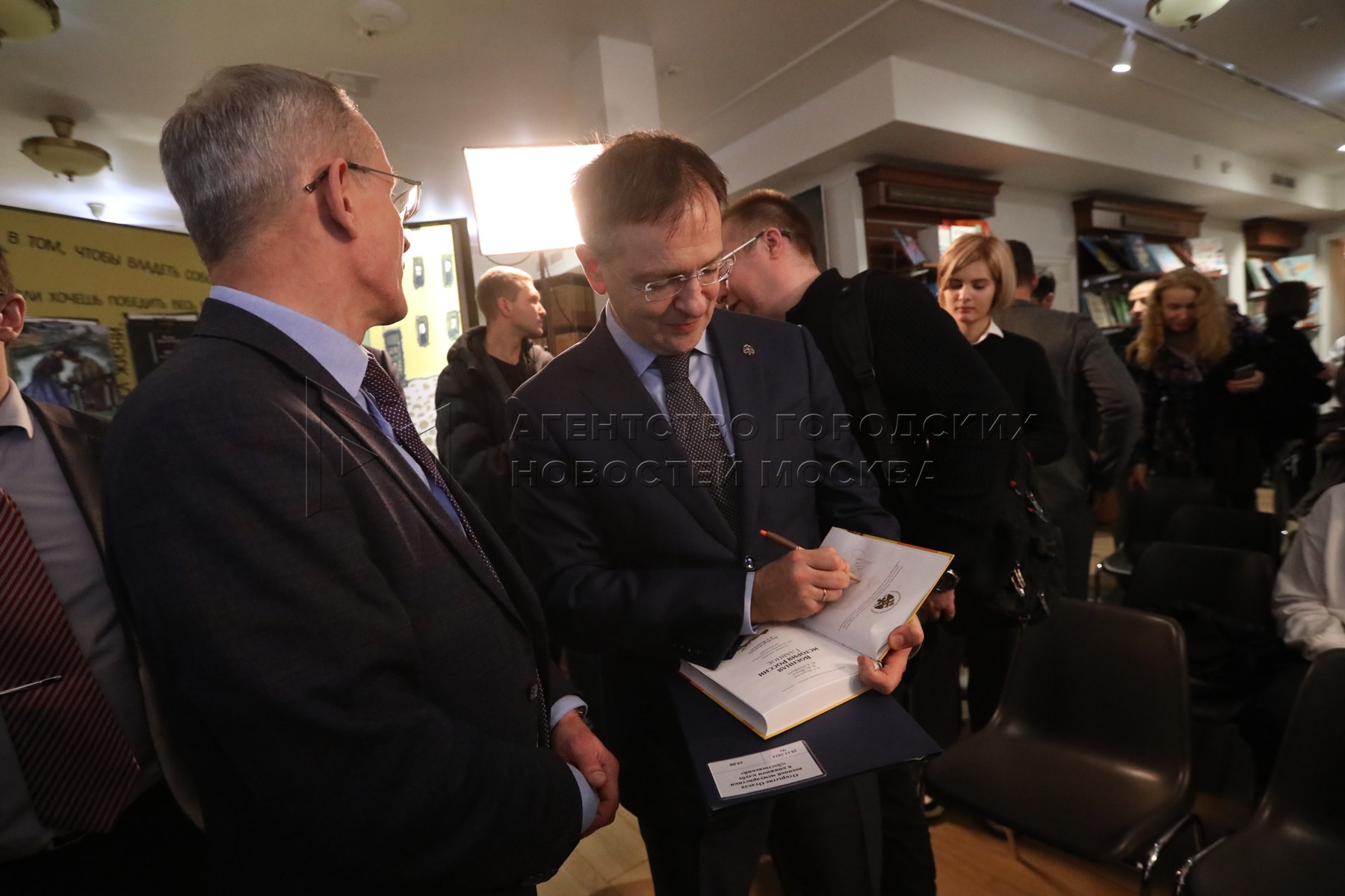 - Описание: Научный директор Российского военно-исторического общества (РВИО) Михаил Мягков. Открытие отдела военной мемуаристики в книжном клубе «Достоевский» на ул. Воздвиженка.