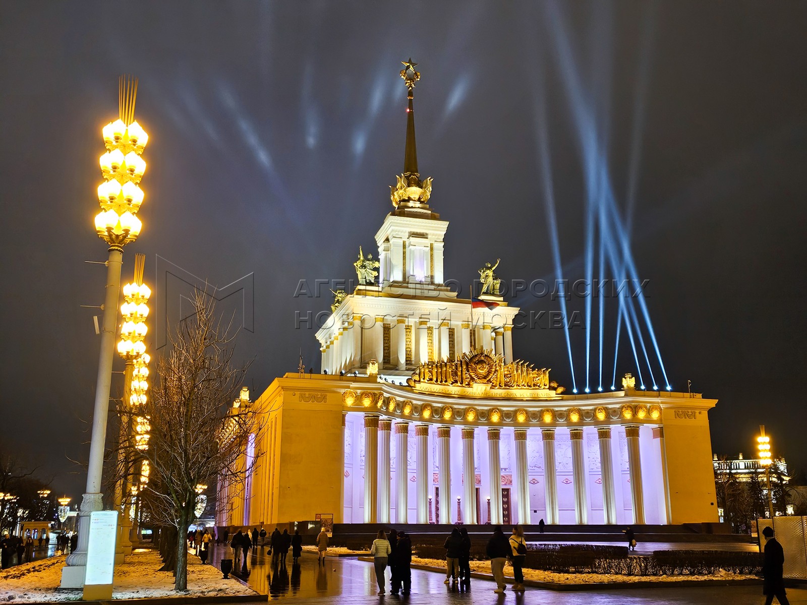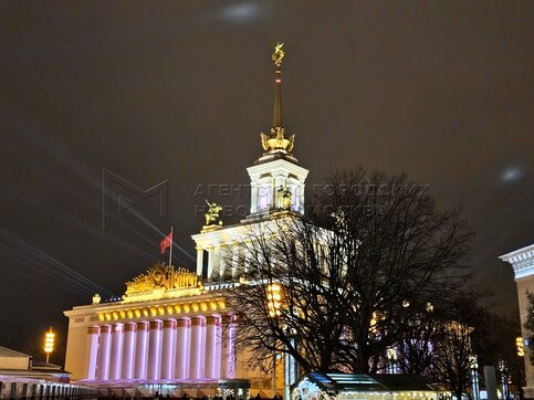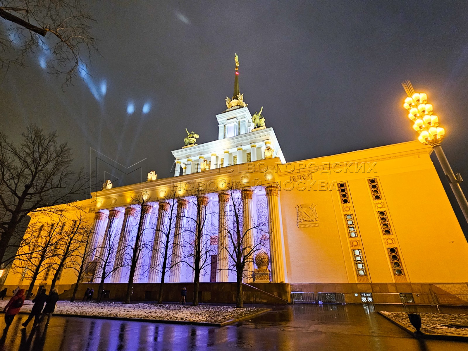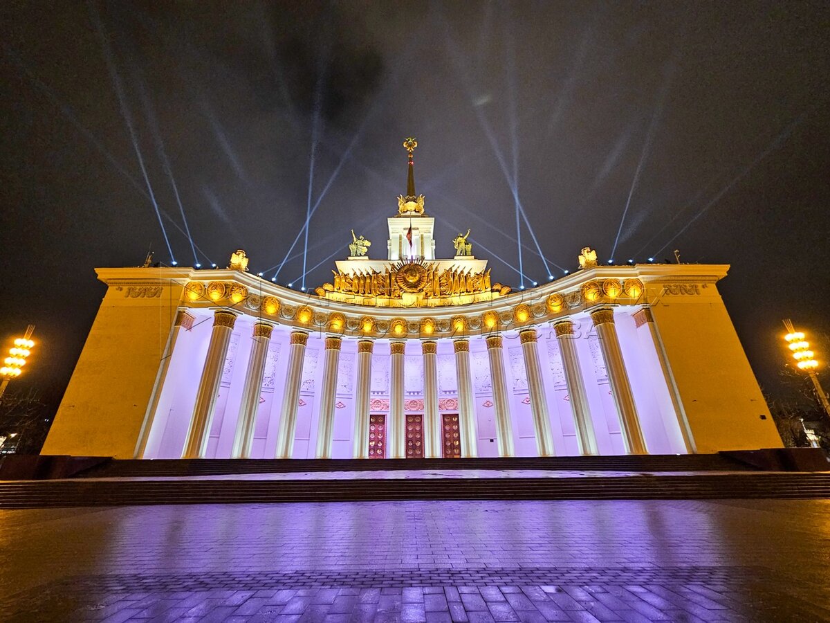 • Заголовок: Вечерняя подсветка павильона «Центральный» на ВДНХ