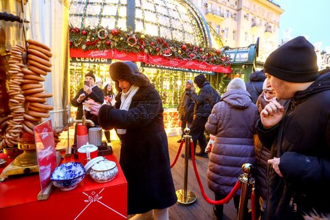 Площадка «Московское чаепитие» работает на Тверской площади в рамках проекта «Зим...