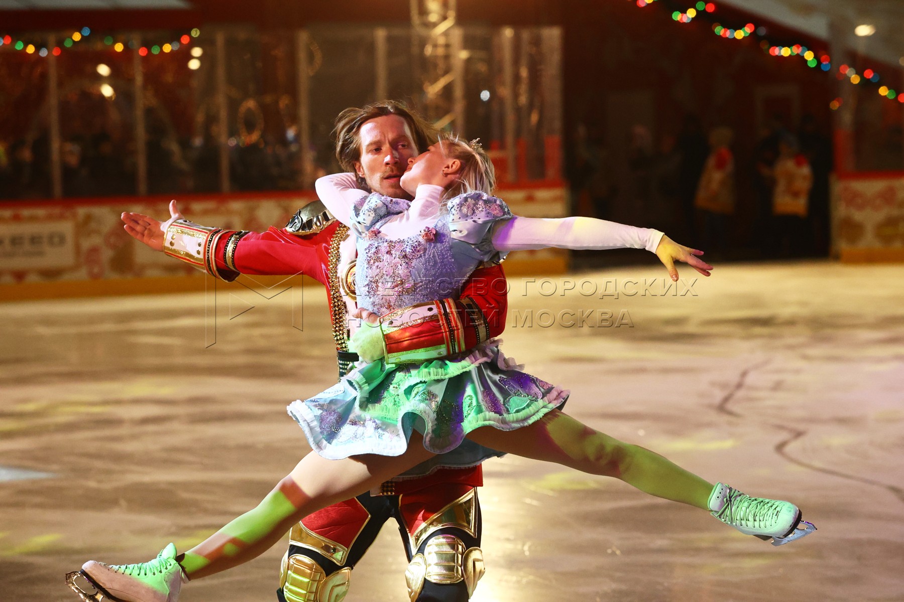 Фигуристы Владимир Морозов и Евгения Тарасова на торжественном открытии ГУМ-катка...