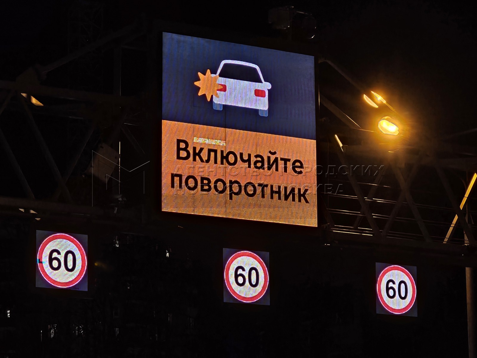 «Включайте поворотник». Информация на электронном дорожном табло на западе Москвы...
