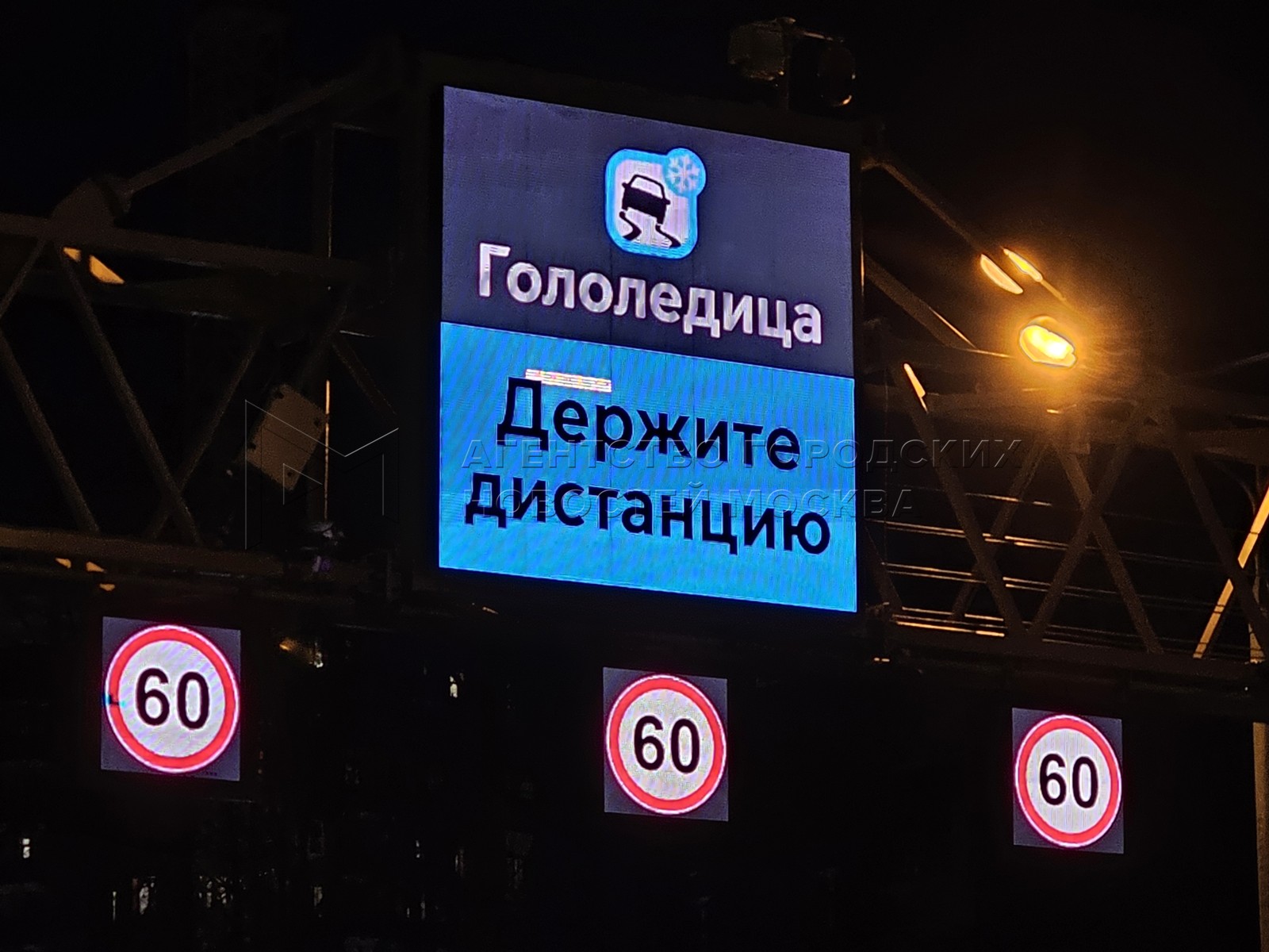 «Гололедица. Держите дистанцию». Информация на электронном дорожном табло на западе Москвы.