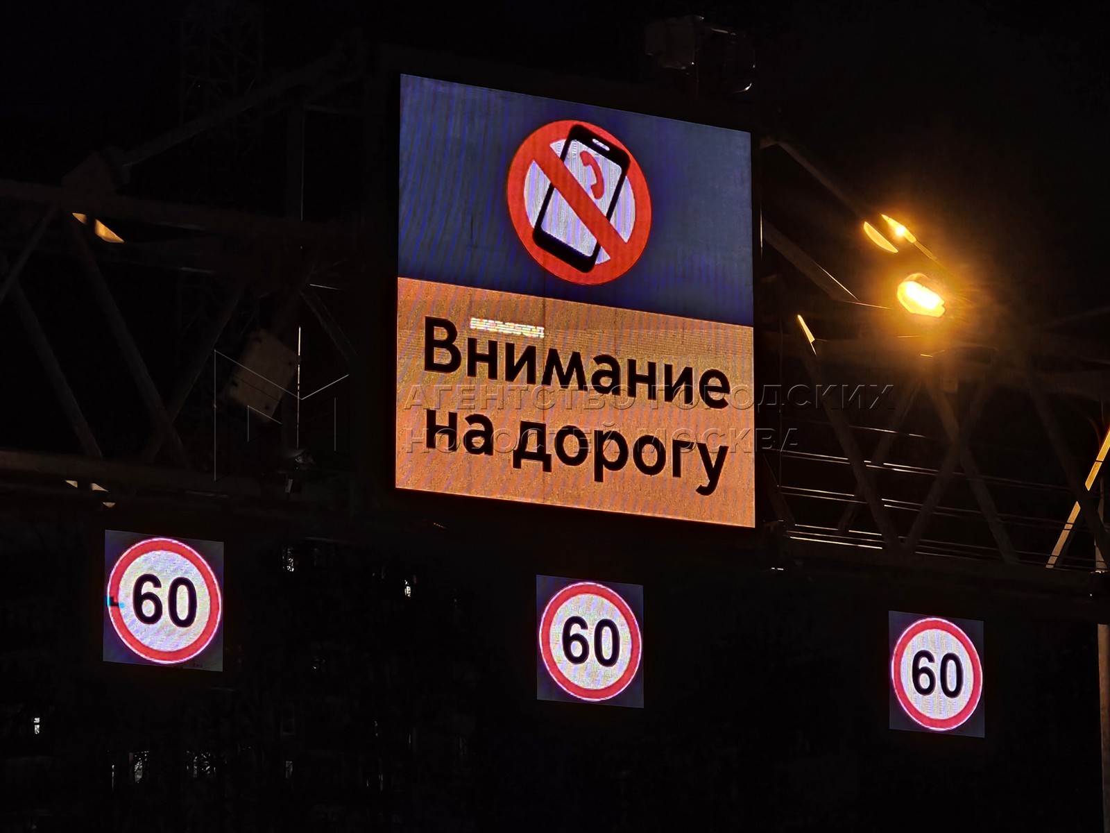 «Внимание на дорогу». Информация на электронном дорожном табло на западе Москвы.