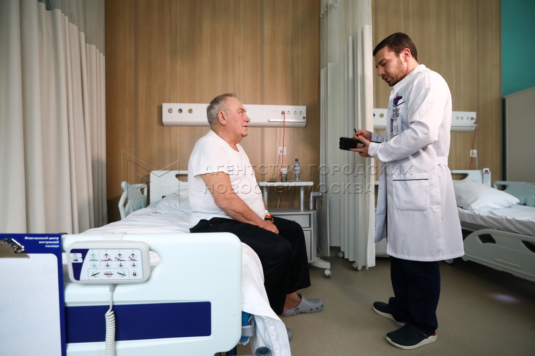 • Описание: Беседа пациента с врачом. Флагманский центр Московского многопрофильного научно-клинического центра (ММНКЦ) имени Боткина после масштабной модернизации.
