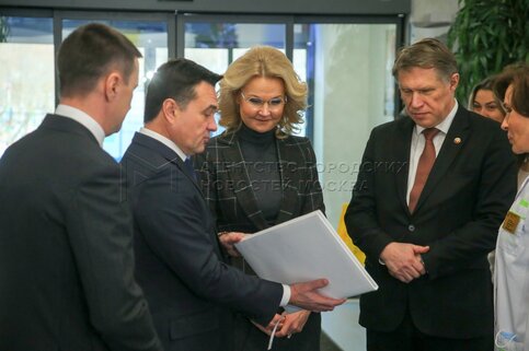 Губернатор Московской области Андрей Воробьев (второй слева), вице-премьер РФ Тат...