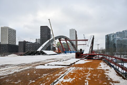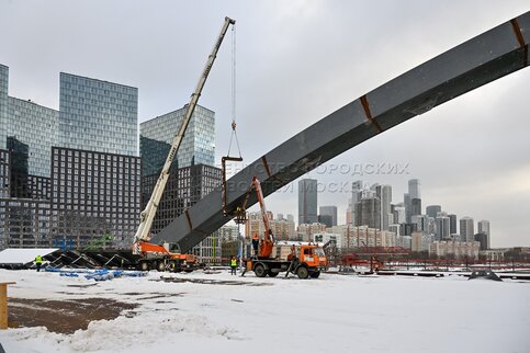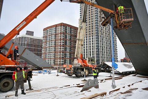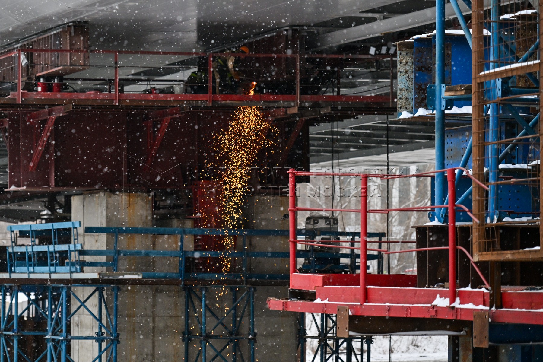 • Описание: Строительство моста через Москву-реку между Шелепихинской и Филевской набережными. Фото: пресс-служба мэра и правительства Москвы.