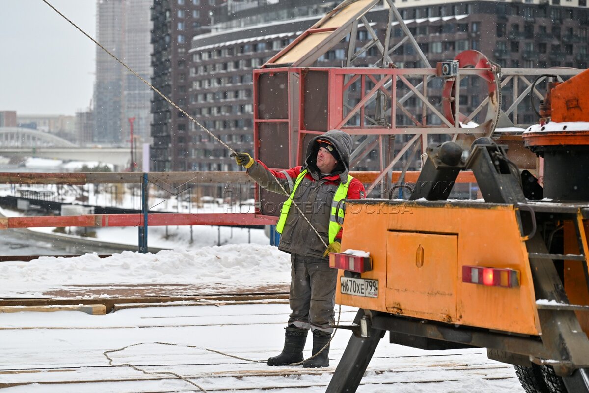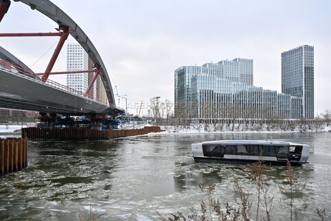 Строительство моста через Москву-реку между Шелепихинской и Филевской набережными...