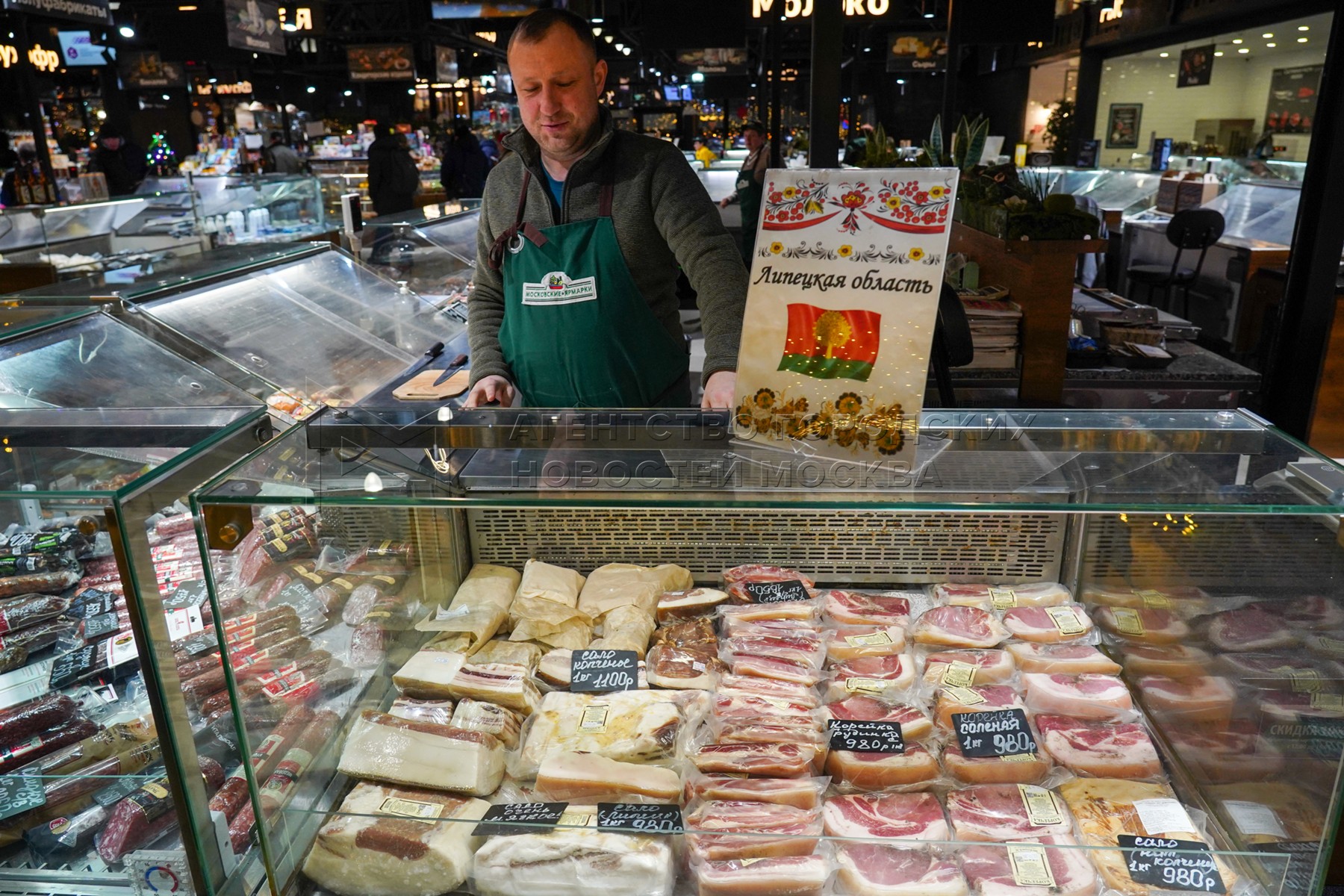 Мясные деликатесы из Липецкой области. Московские ярмарки, украшенные к Новому го...