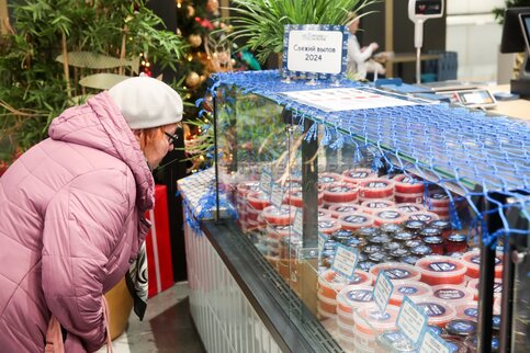 Продажа икры на рыбном рынке «Москва – на волне» в районе Митино.