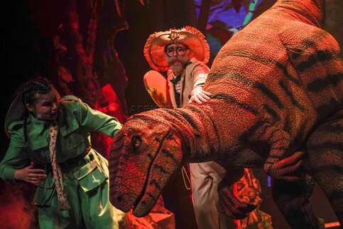 Показ премьерного спектакля «Сафари с динозаврами» в Театре иллюзий.