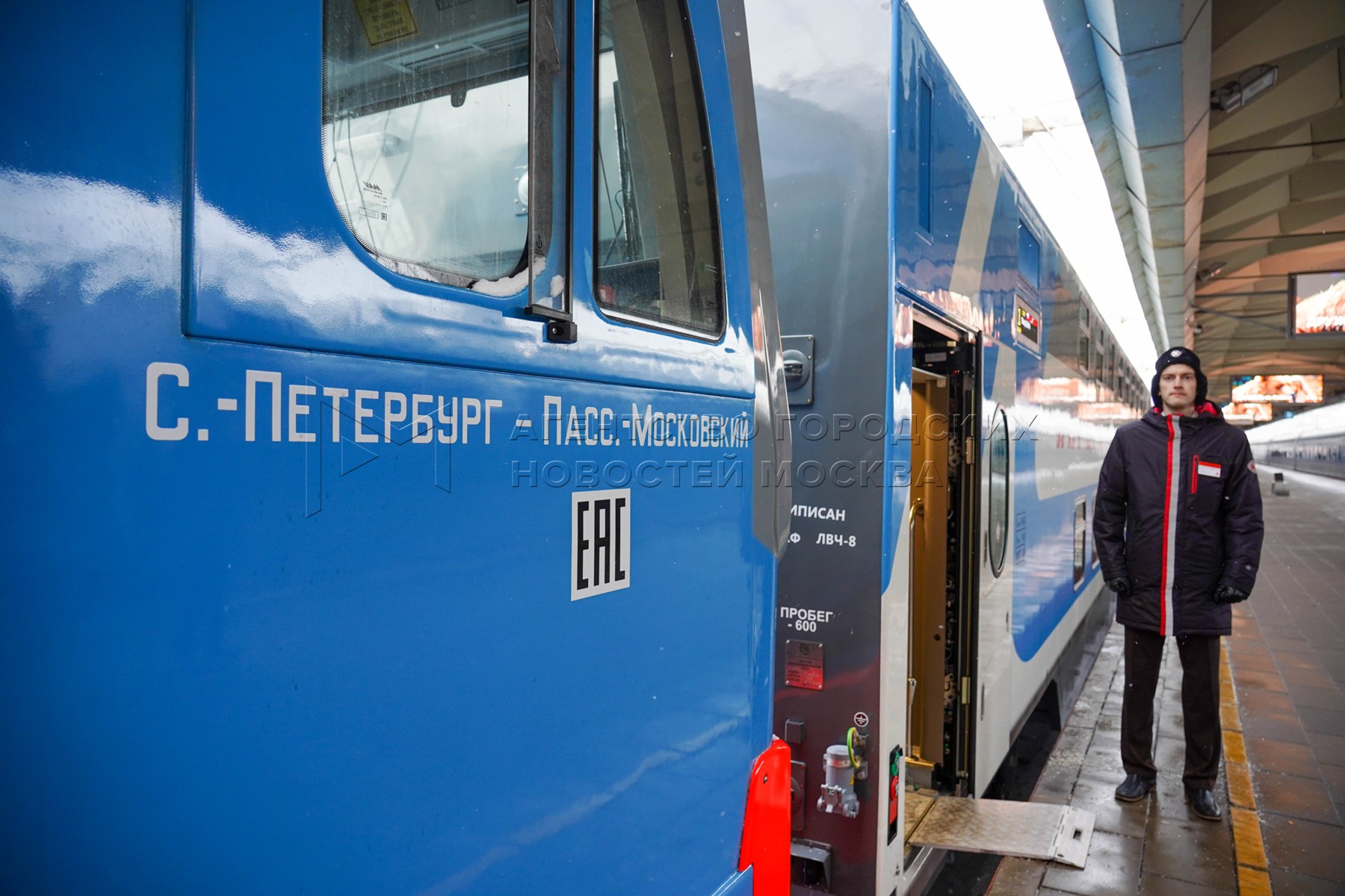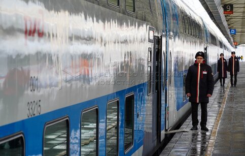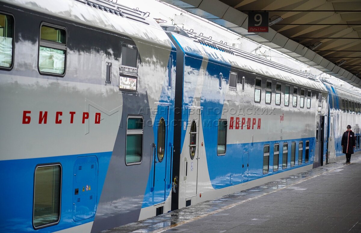 • Заголовок: Презентация новых вагонов двухэтажного скоростного поезда «Аврора» на Ленинградском вокзале
