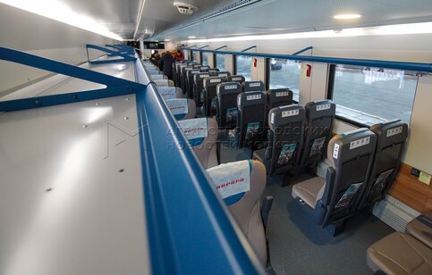 Купе. Презентация новых вагонов двухэтажного скоростного поезда «Аврора» на Ленин...