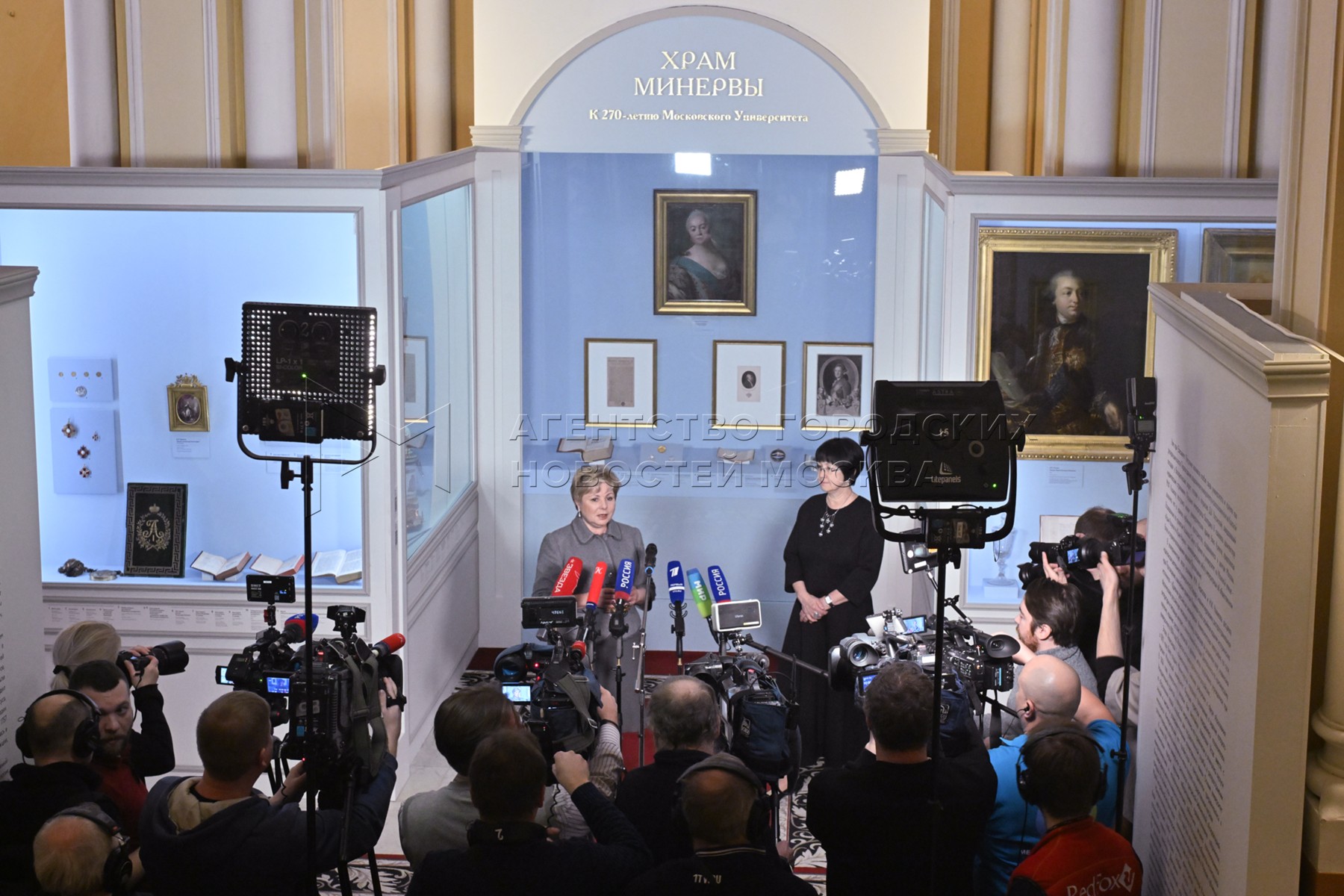 Предпоказ выставки «Храм Минервы. К 270-летию Московского университета» в Парадно...