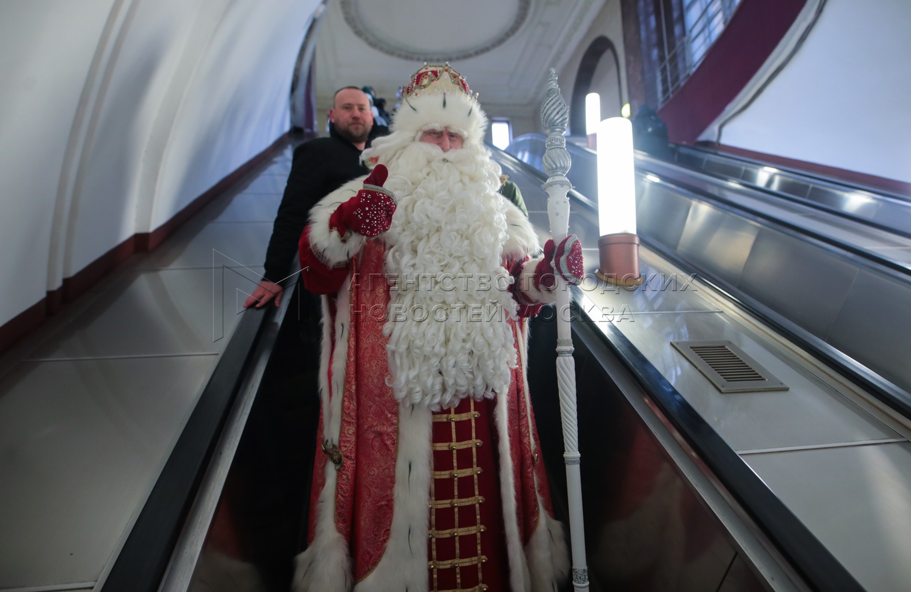 Поздравление пассажиров Московского метрополитена главным российским Дедом Морозом из Великого Устюга.