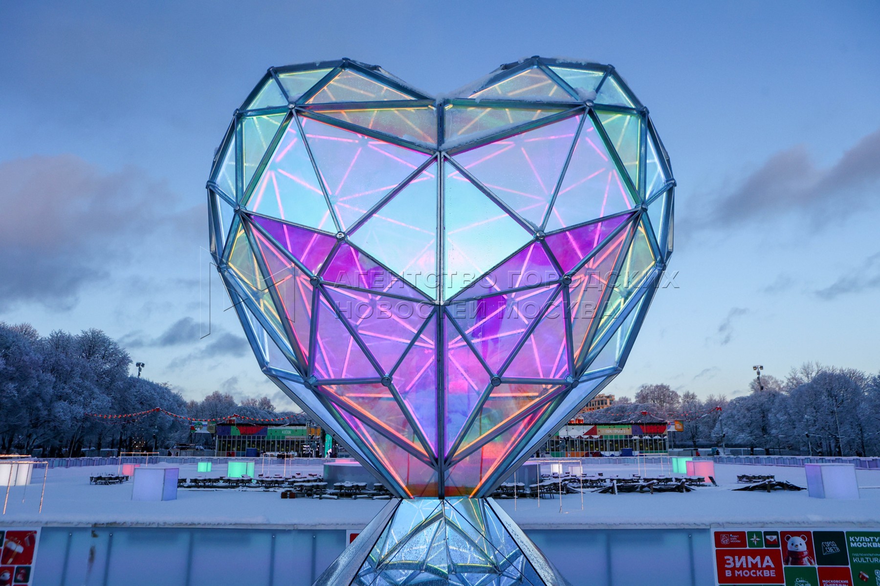 Инсталляция «Сердце Москвы» на катке в Парке Горького. Фестиваль «Снег и лед» в Центральном парке культуры и отдыха имени Горького в рамках проекта «Зима в Москве».