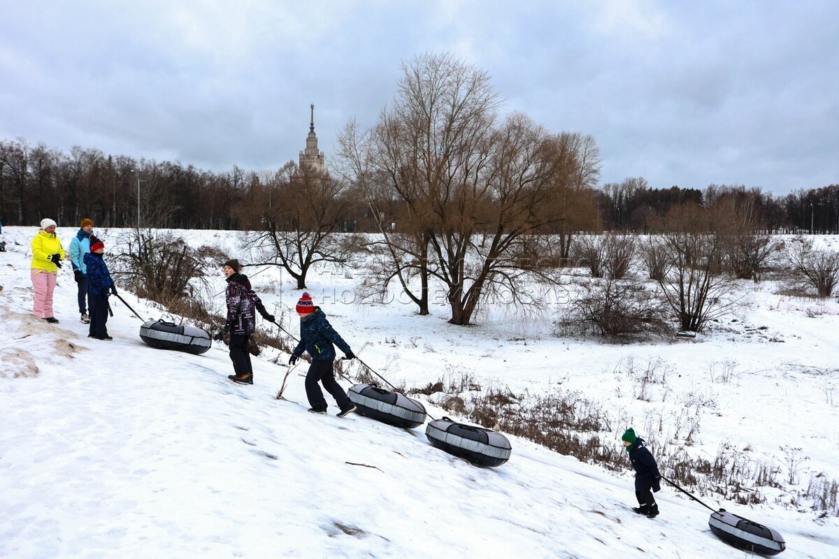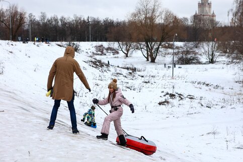 • Описание: Катание на горках у Дворца пионеров на Воробьевых горах.