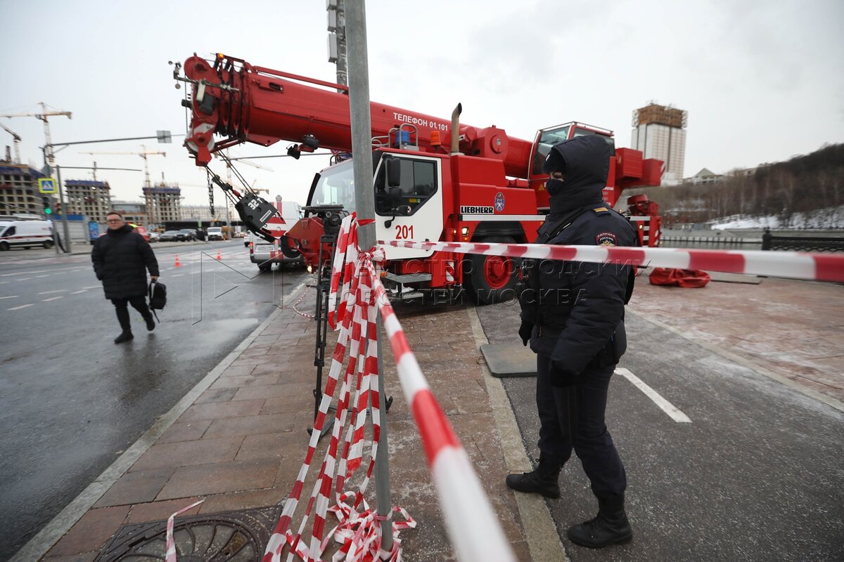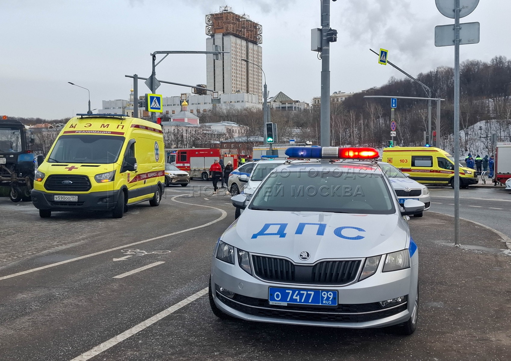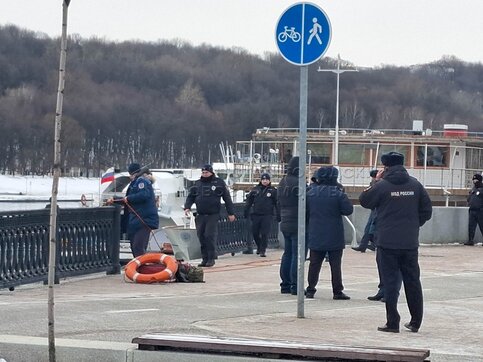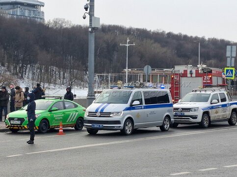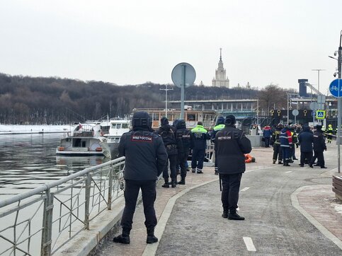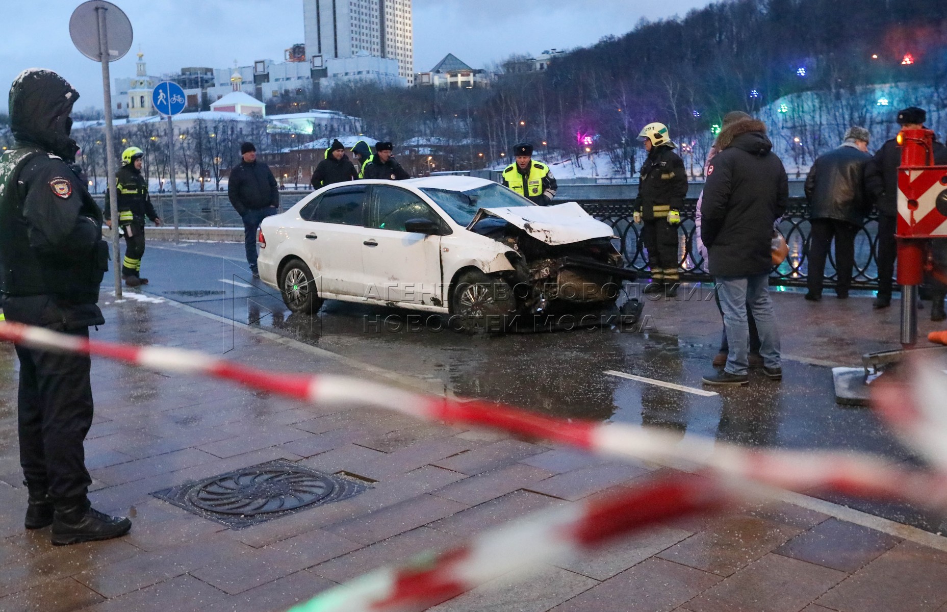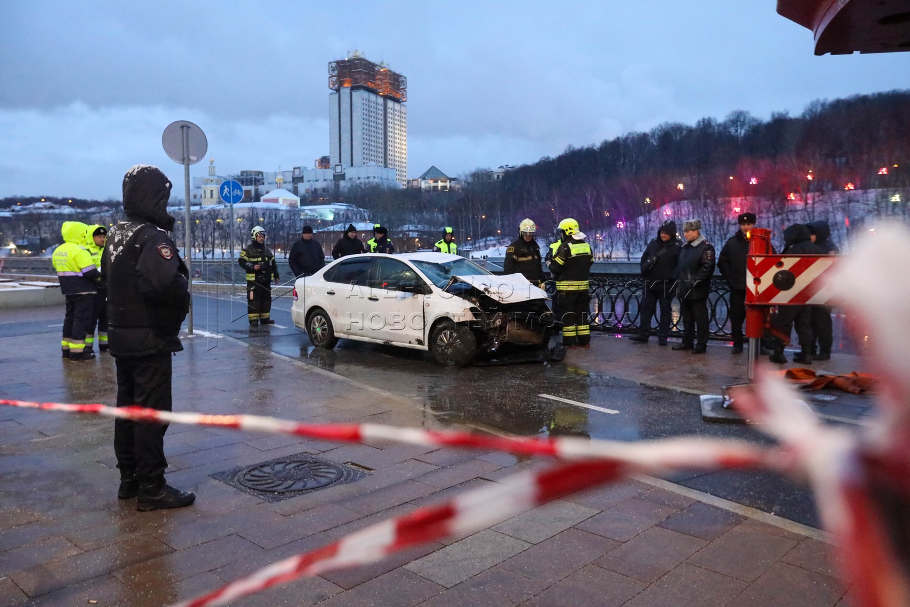 - Заголовок: Оперативные службы на месте падения автомобиля в Москву-реку в районе Лужнецкой набережной