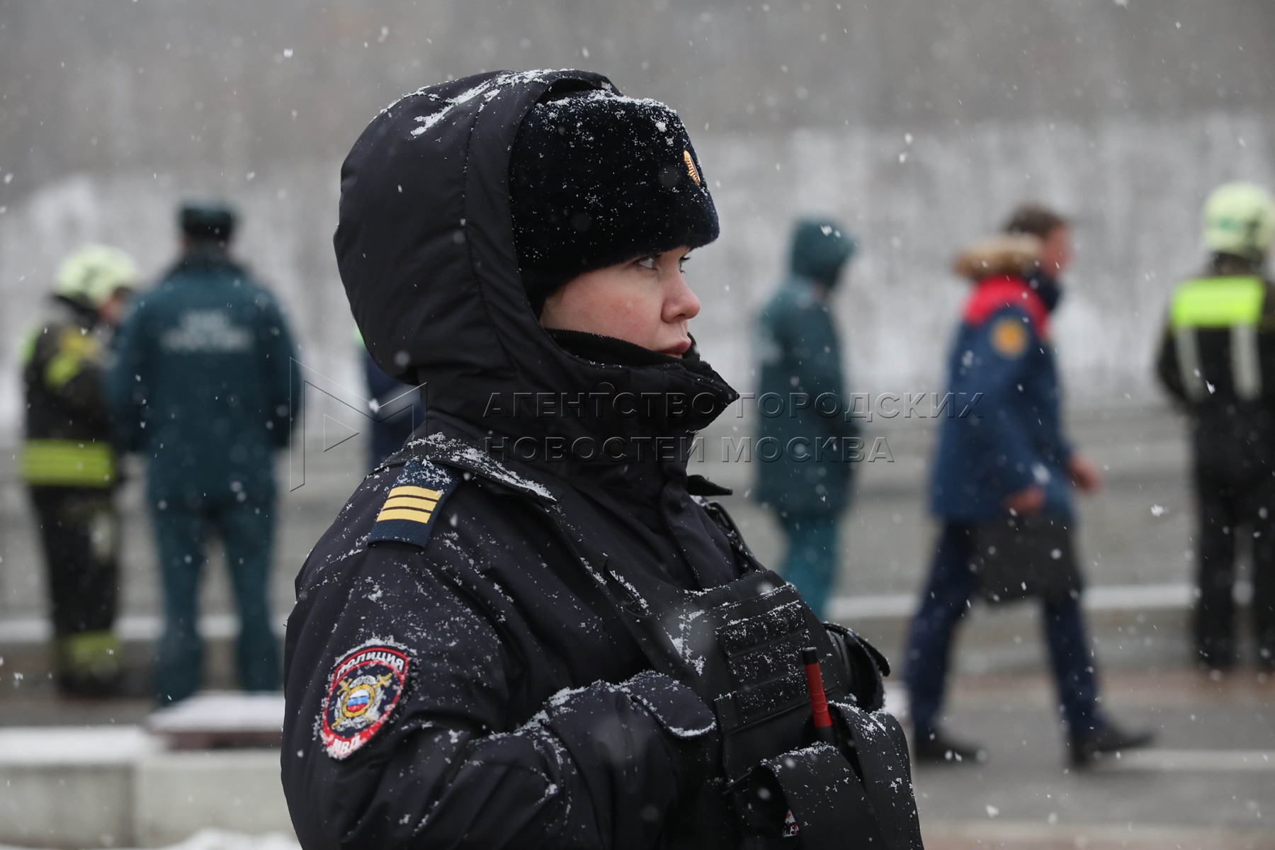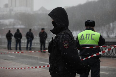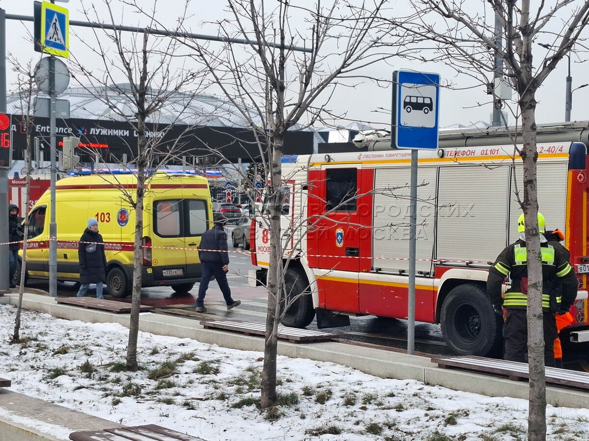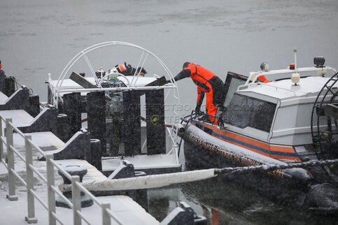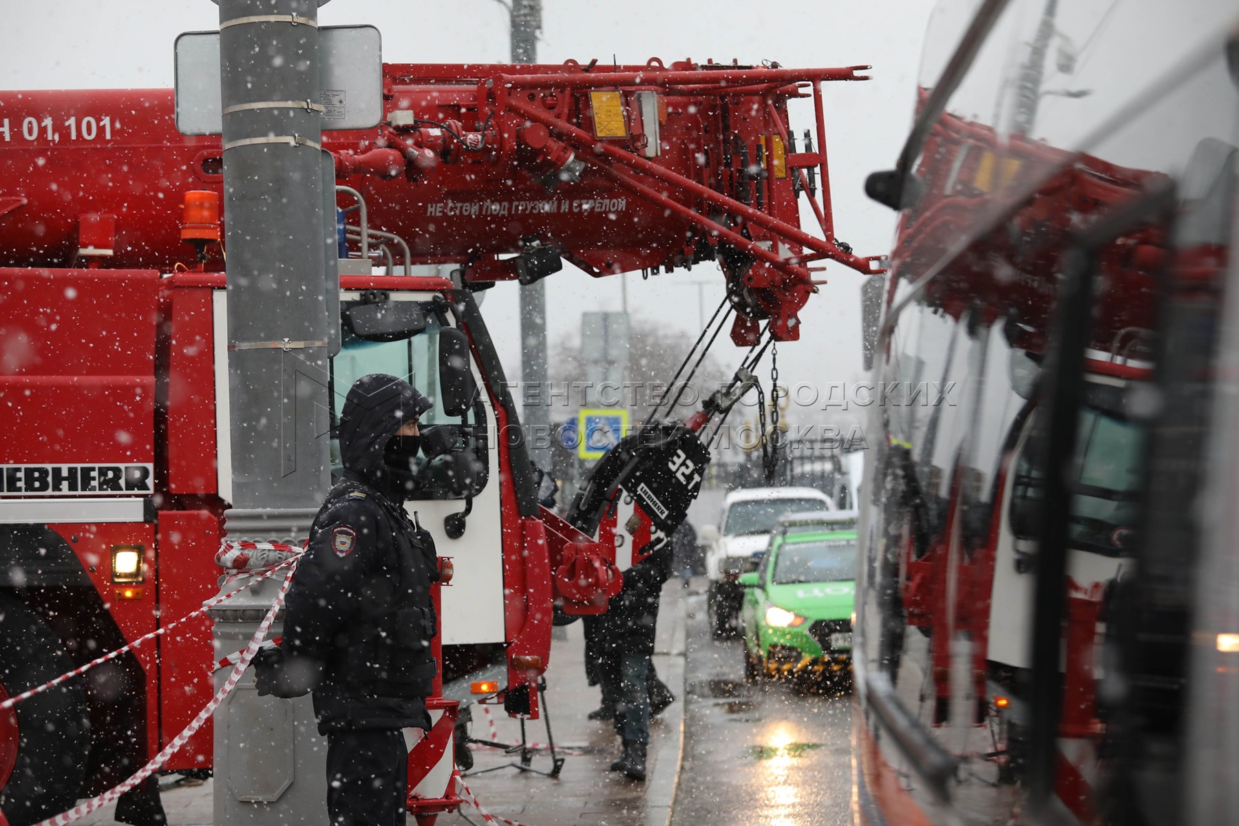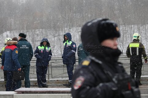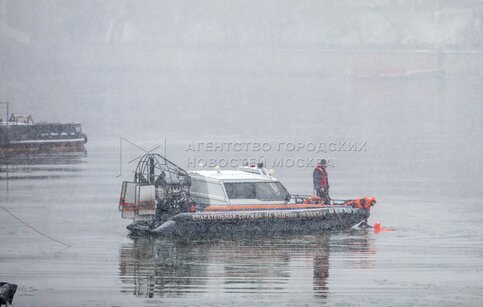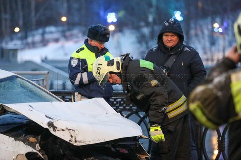 - Заголовок: Оперативные службы на месте падения автомобиля в Москву-реку в районе Лужнецкой набережной