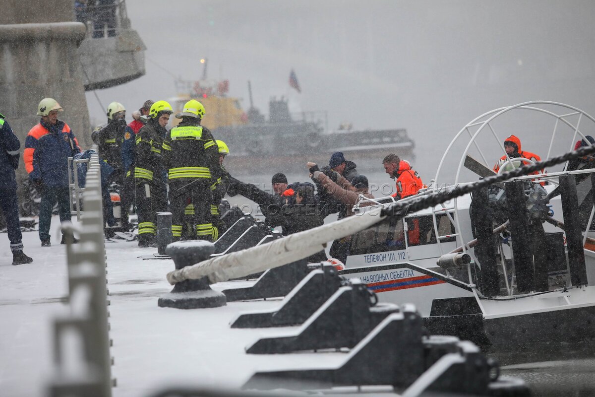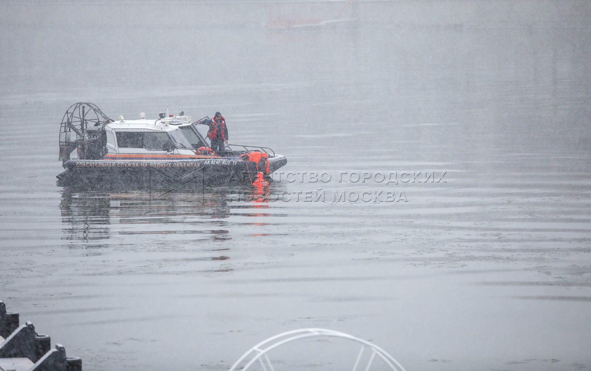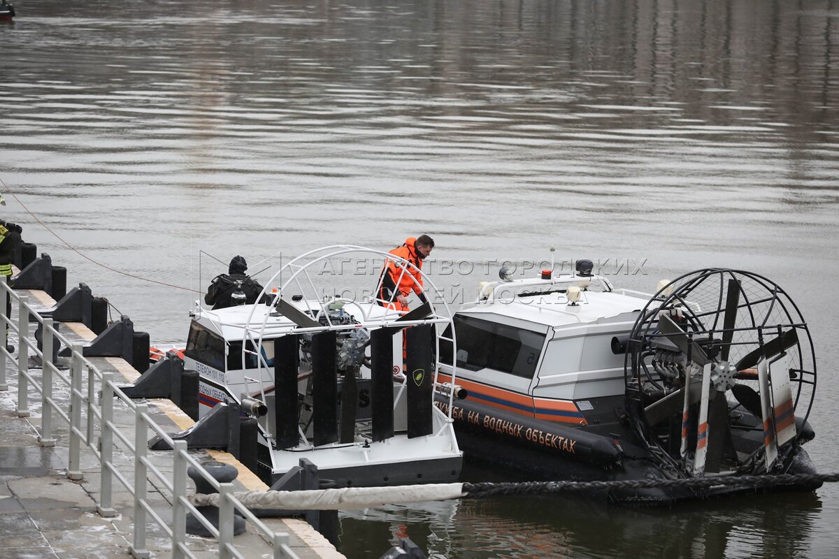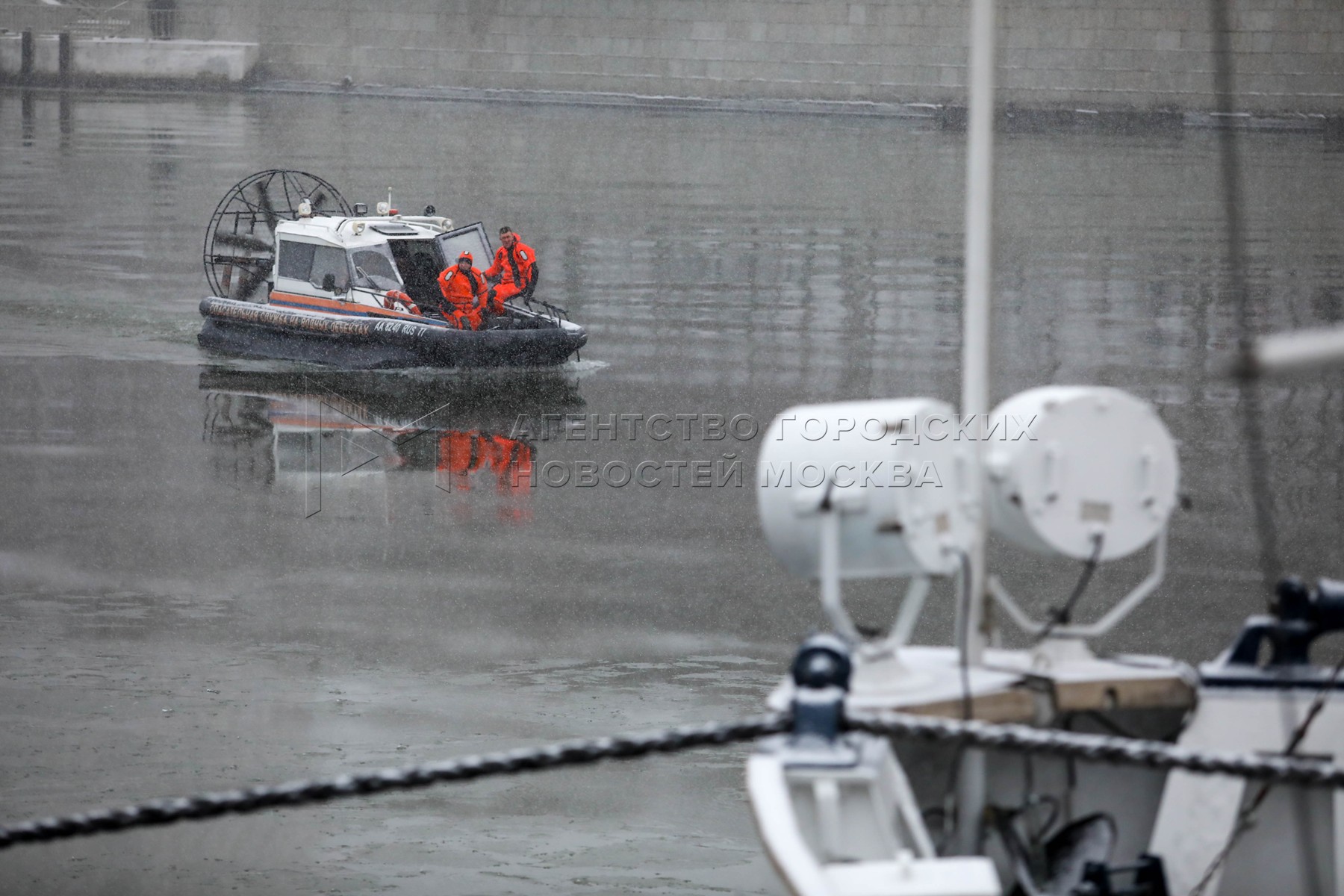 Оперативные службы на месте падения автомобиля в Москву-реку в районе Лужнецкой набережной.