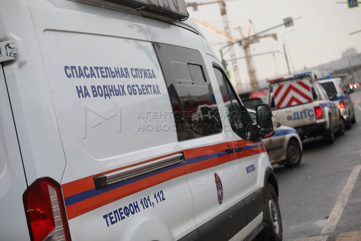 Оперативные службы на месте падения автомобиля в Москву-реку в районе Лужнецкой набережной