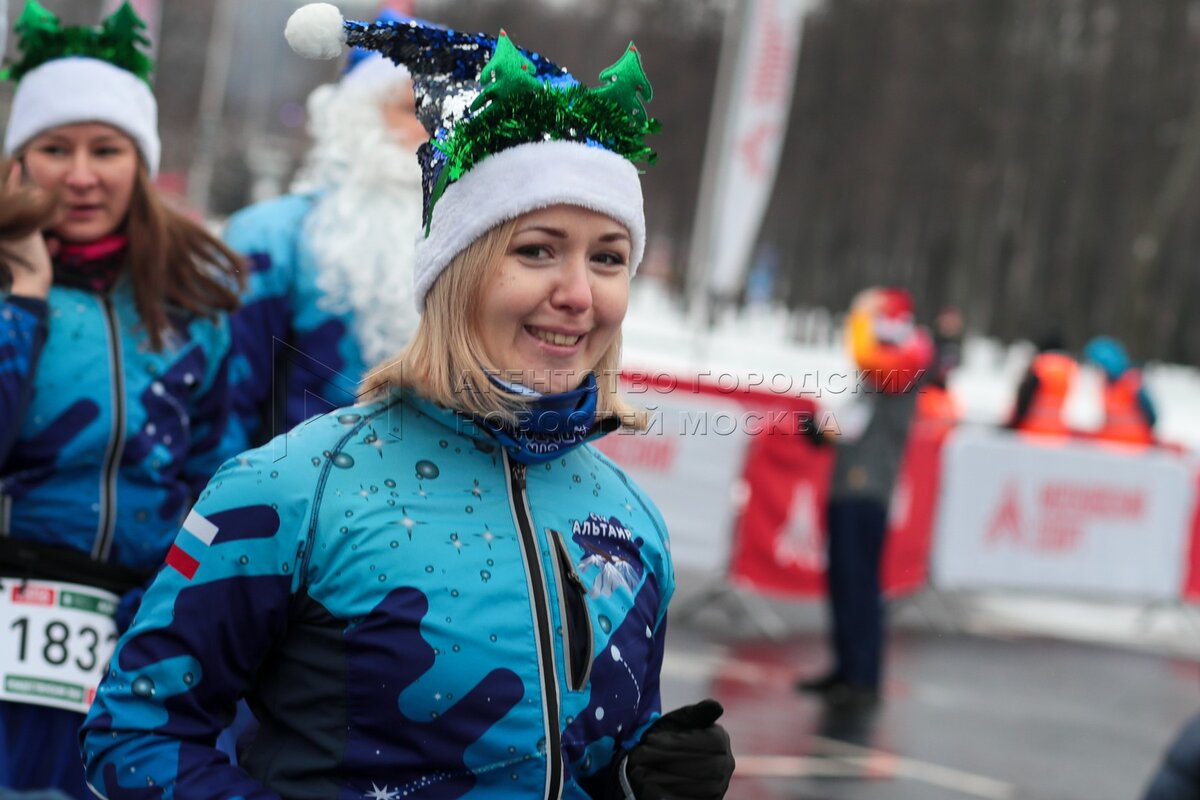 Традиционный рождественский забег Дедов Морозов на территории олимпийского комплекса «Лужники».